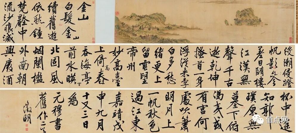 文待诏金山图真迹。苍石署检。钤印:吴押。