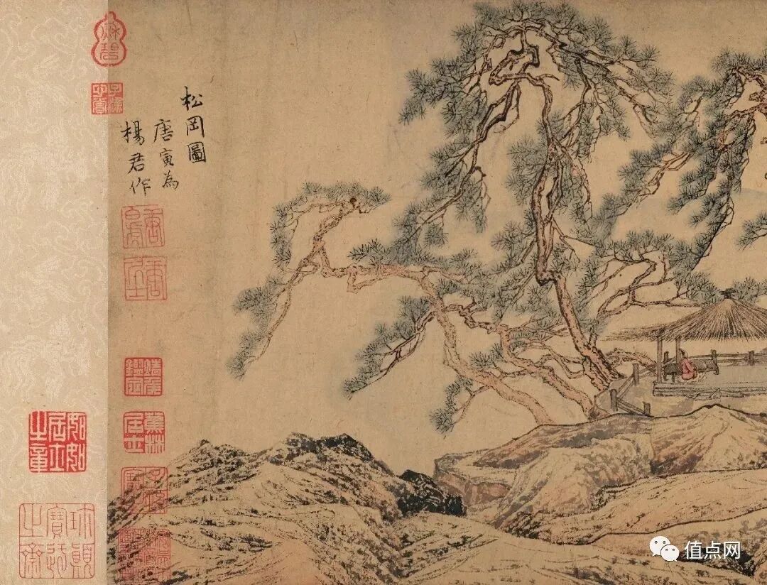 明唐子畏松冈图卷。风满楼珍藏。钤印:云谷。