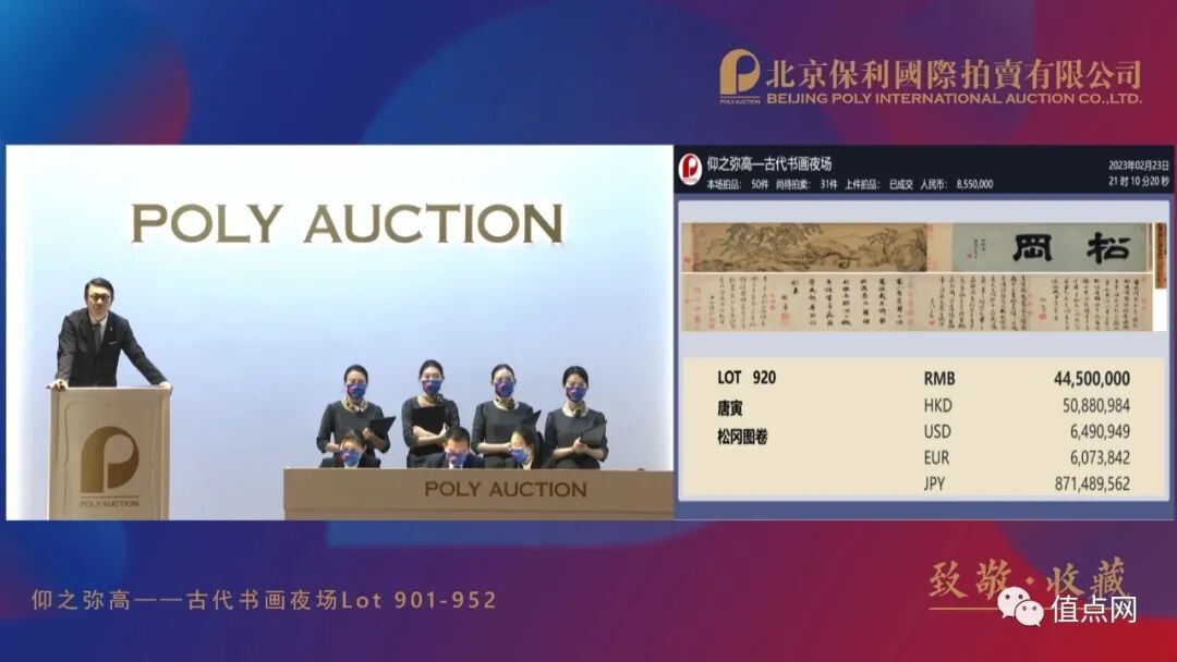 踏进拍卖周第三日(23号),古书画夜场无疑是焦点所在,50件拍品上阵,仅1件流拍,成交率达98%,合共斩获RMB 3.72亿。