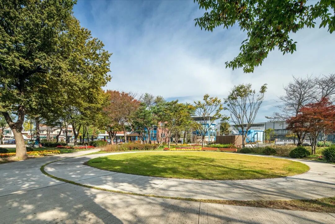 Jochiwon Cultural Garden reused the existing facilities and the main pedestrian path which connects main facilities. The new linear transparent ‘Welcome Centre’ on the east side and the existing water purification facilities on the north side are connected through circular walkway on the ground level. The purification facilities have been transformed into a new spiraling exhibition space and viewing point.