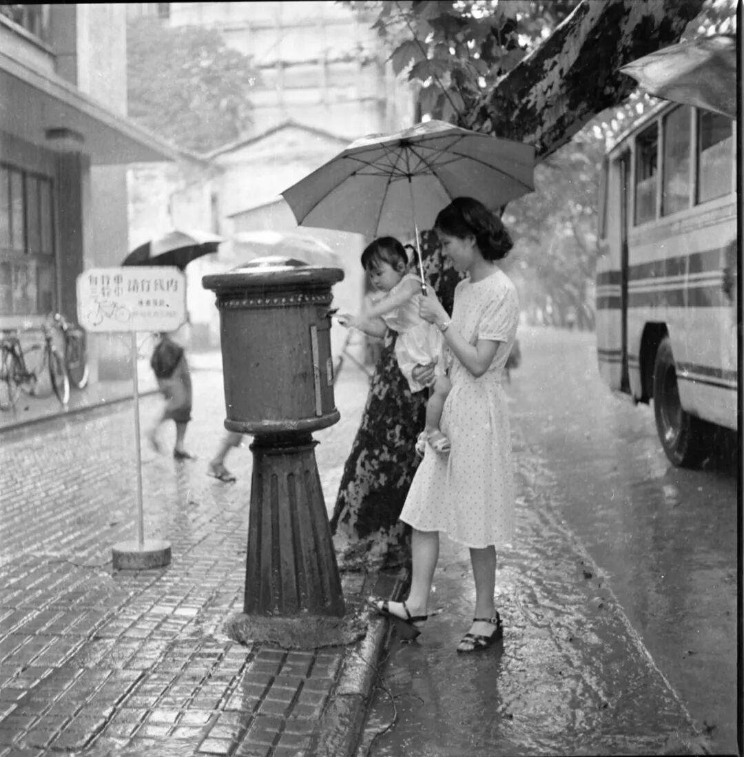 母女俩冒雨给远方的家人寄信,浙江衢州,1985年 林国镇