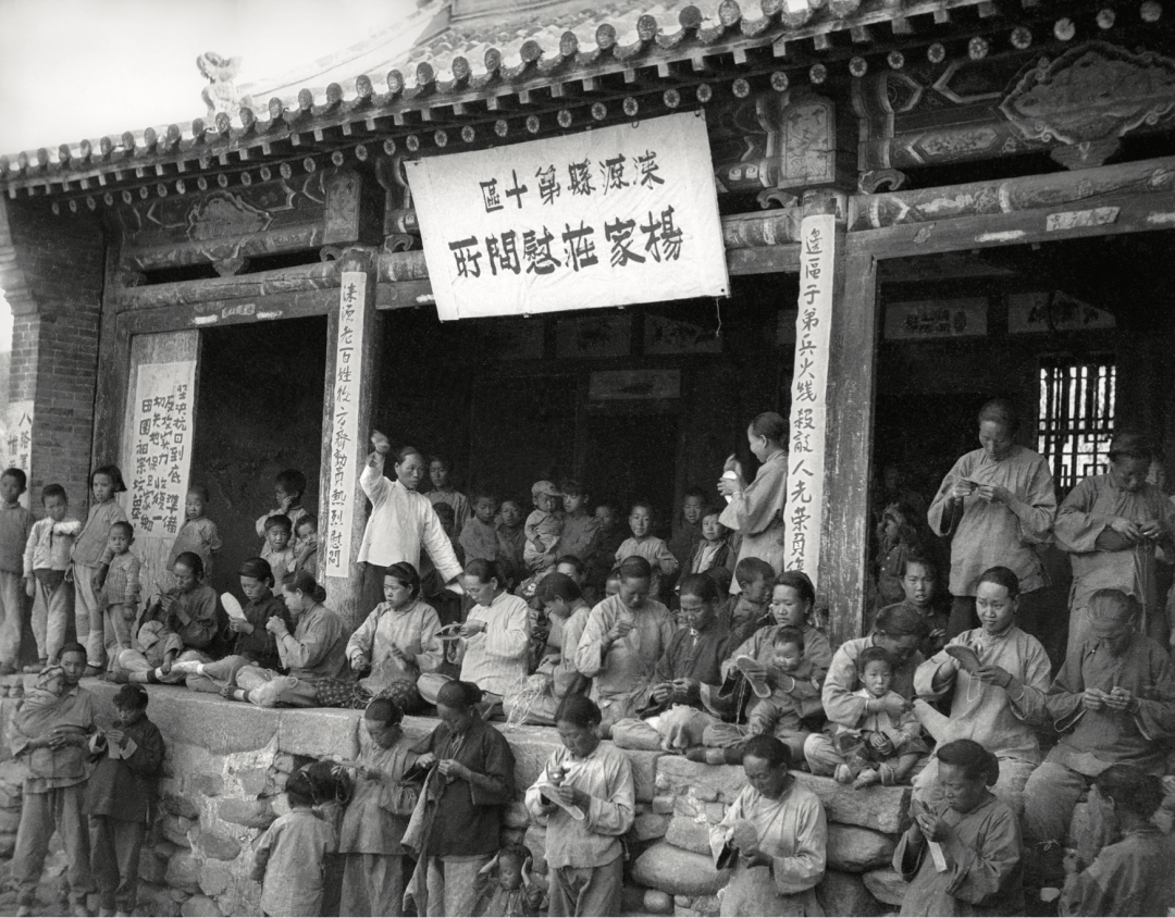 河北涞源妇女为前方战士做军鞋,1938年 沙飞