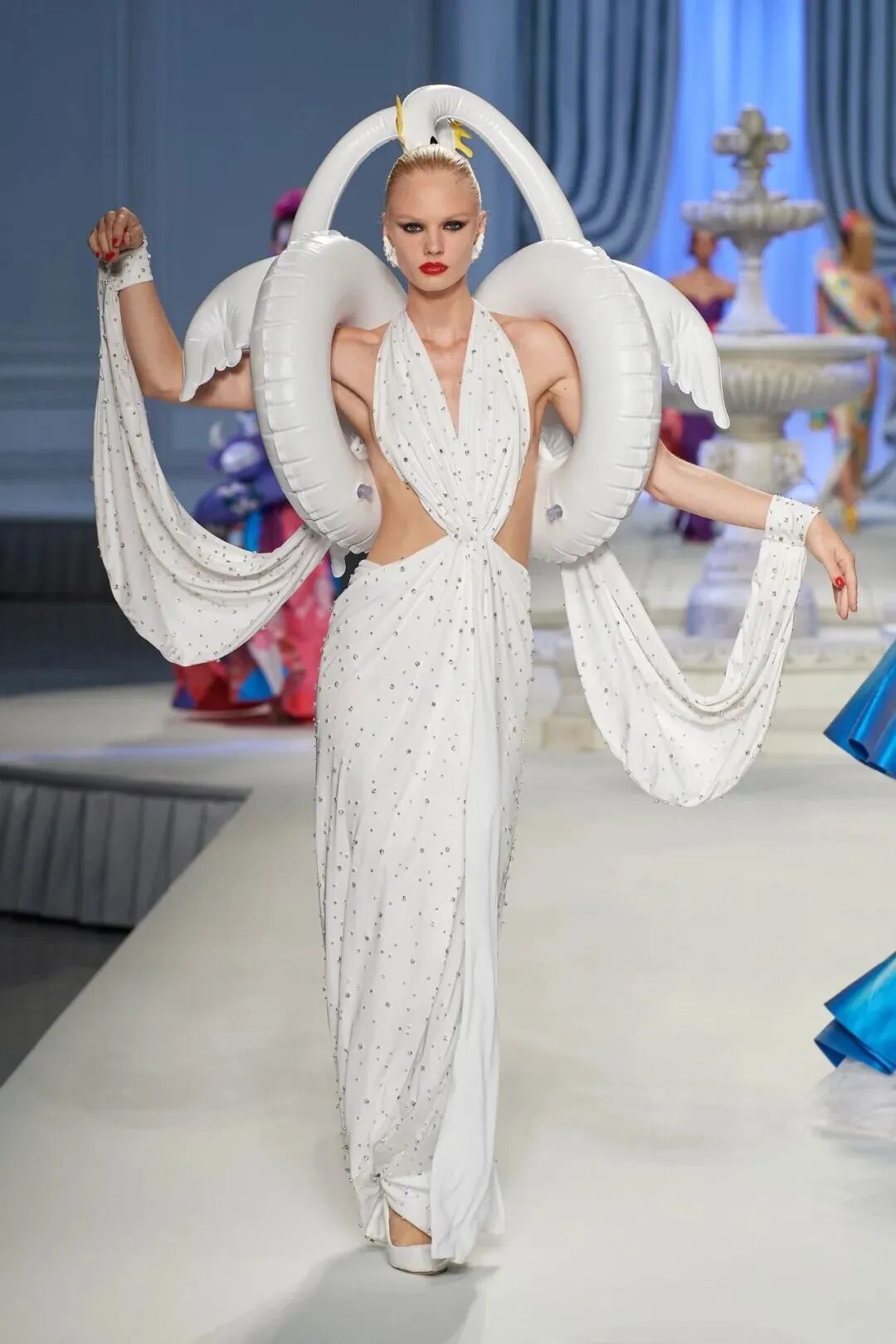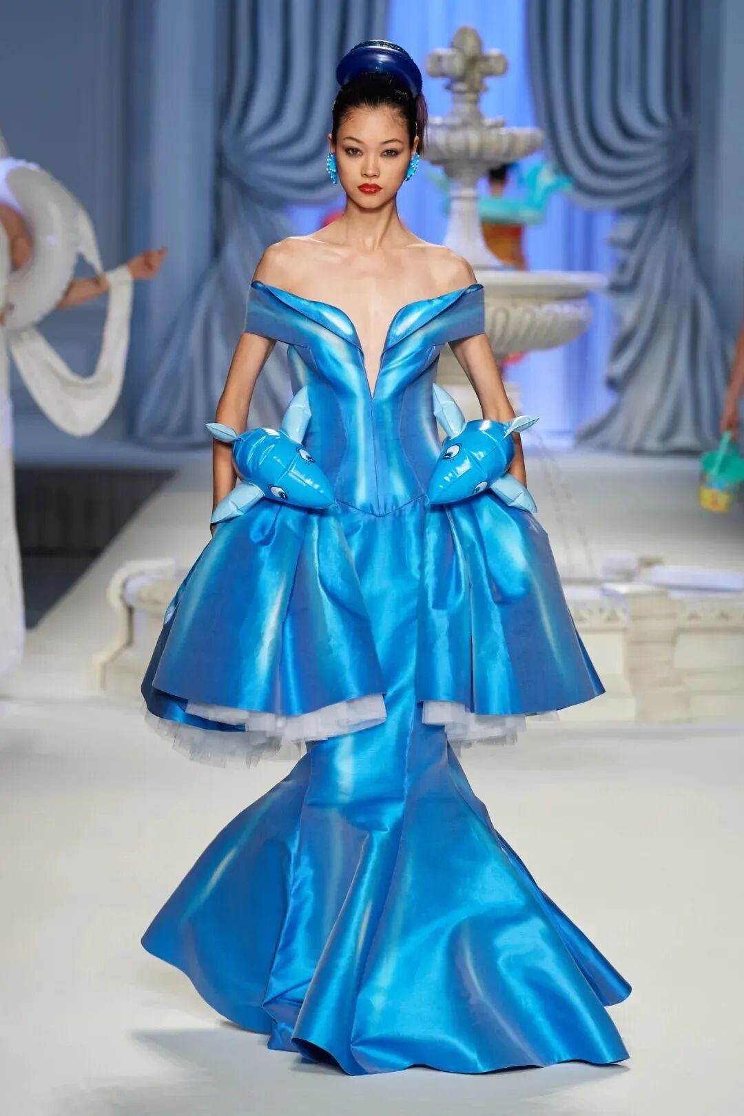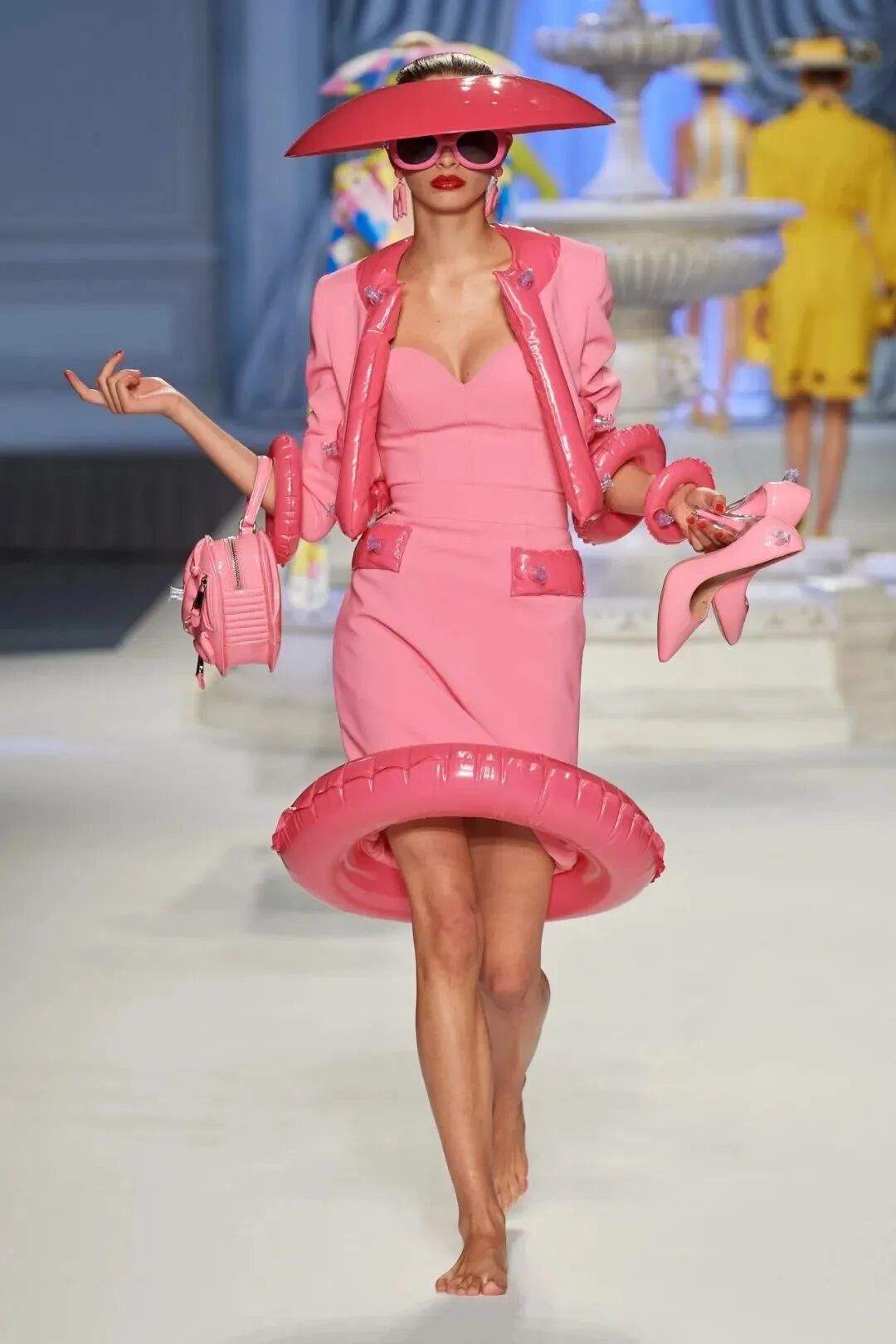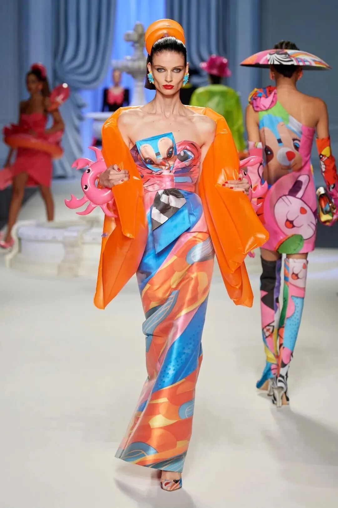 Moschino 2023春夏系列,Jeremy Scott用十分诙谐的方式表达出本季主题“通货膨胀”,纵观整季更是呈现出派对的华丽热闹感。