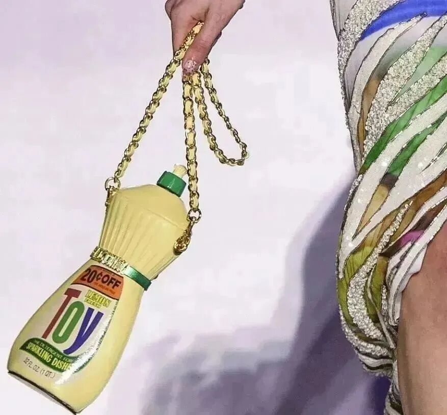 关于设计,Jeremy Scott也印证了“一切皆可时尚”!除了家具、垃圾袋、食物,还有酒瓶、牙膏、吹风机等,站在家中肉眼可视1米范围,任何可以拿到的东西可能都被他设计成时尚服饰,话题热度满满,引得无数网友围观。