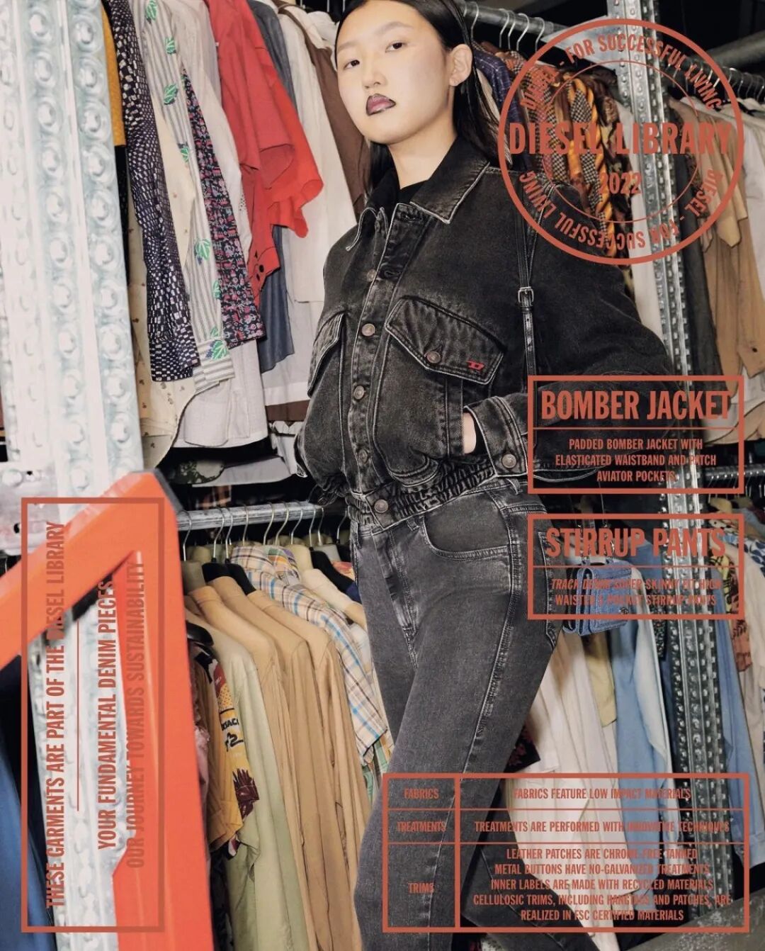 Diesel还加入了许多环保概念,采用可循环利用的丹宁布料和弹力棉,运用无水靛蓝染色技术处理面料,以及通过“修复”汲取生产碎料研制出全新纱线…