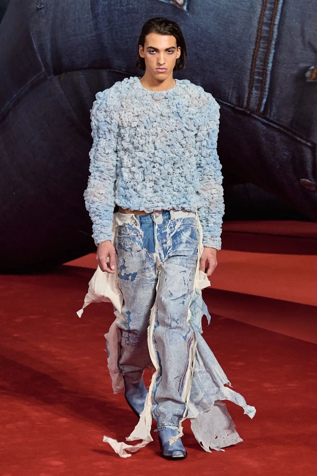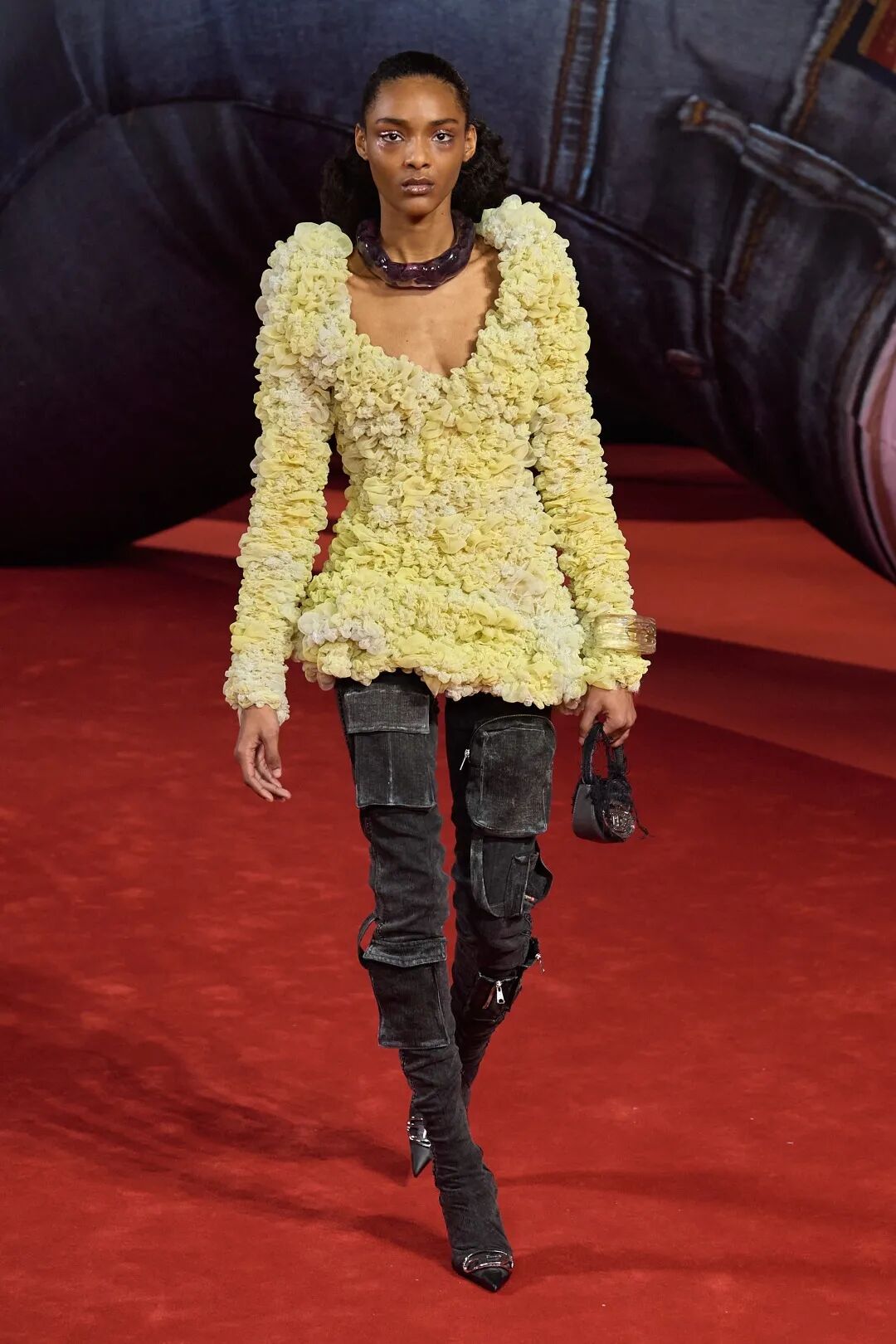 此次操刀Diesel的是品牌创意总监、安特卫普解构主义鬼才——Glenn Martens。1月他与JEAN PAUL GAULTIER 的合作惊艳四座,而Martens与Diesel的缘分早在2018年的胶囊系列就开始了。