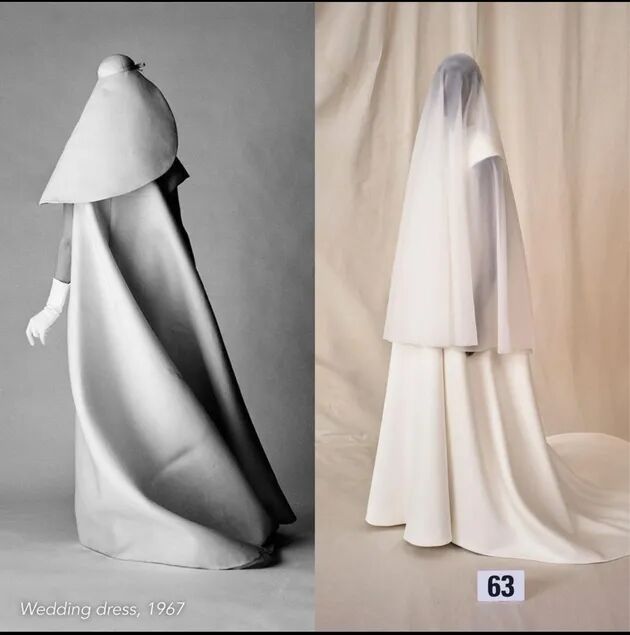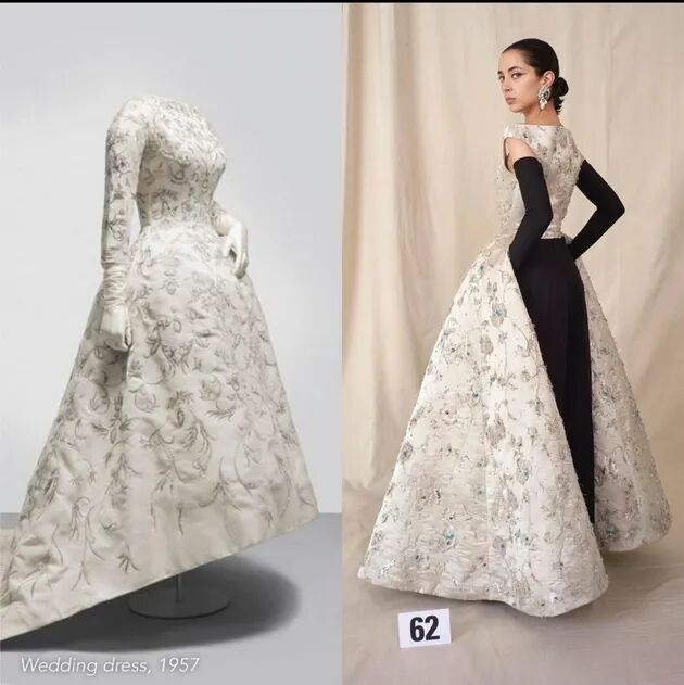 错综复杂的拼接设计和多种刺绣工艺打造出华贵的全新单品。压轴造型是一套面纱新娘礼服,由250米长的不同材质薄纱缝制而成,致敬典藏花纹样式。