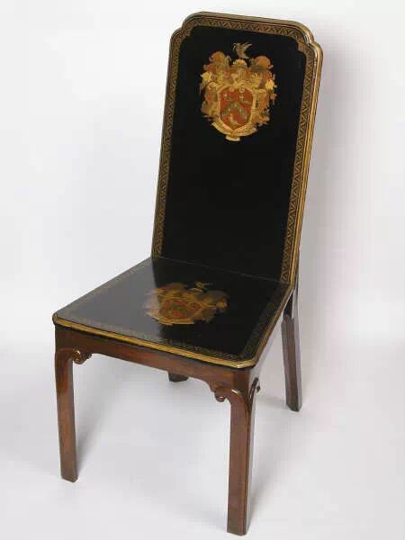 儿童中国漆木椅,并绘有孩子的纹章,1720s,奥斯特里公园。这是弗朗西斯爵士为自己较小的孩子,定制的整套家具中的一件。