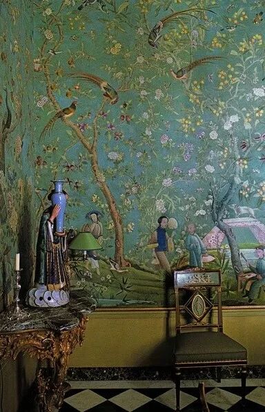 美国驻伦敦大使海恩斯格雷伯,房子里装饰着老的中国手绘墙纸。