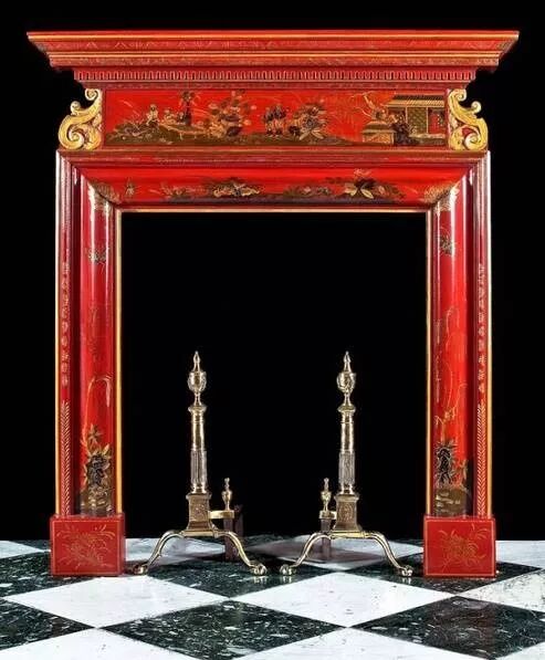 新古典风格的中国红漆壁炉,大约1820年。