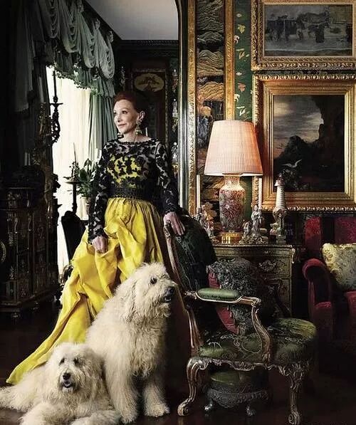 Ann Getty,打开的是一个令人眼花缭乱房间,确切的说是东方风格,身后的边柜放着中国花瓶的台灯和瓷器装饰。