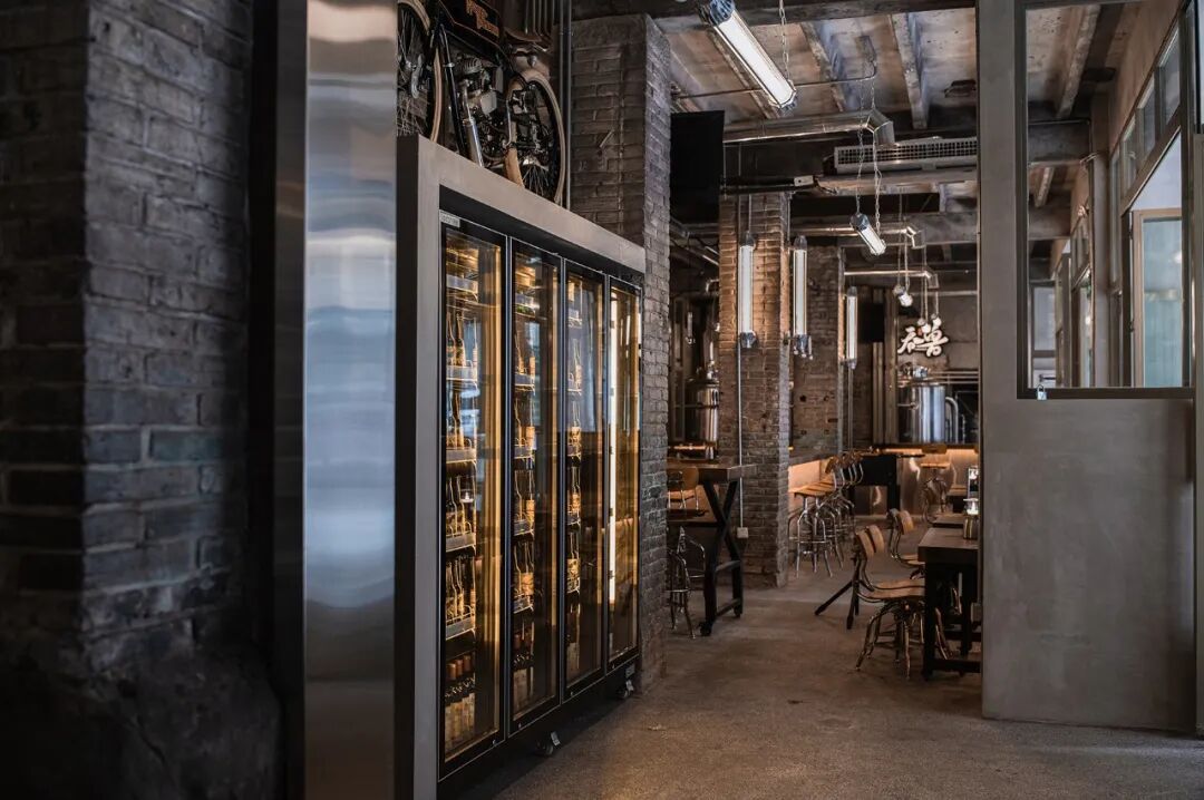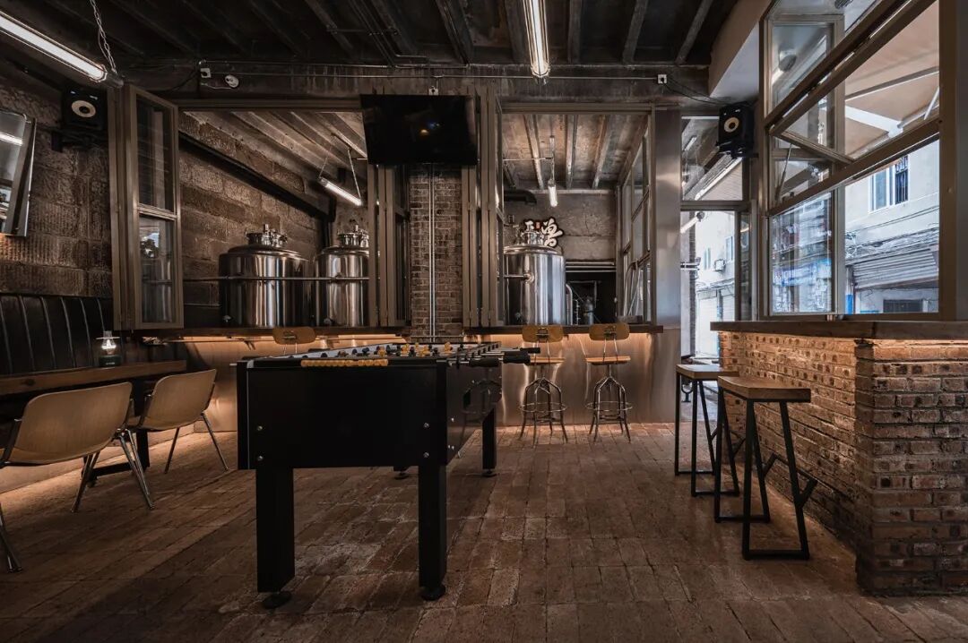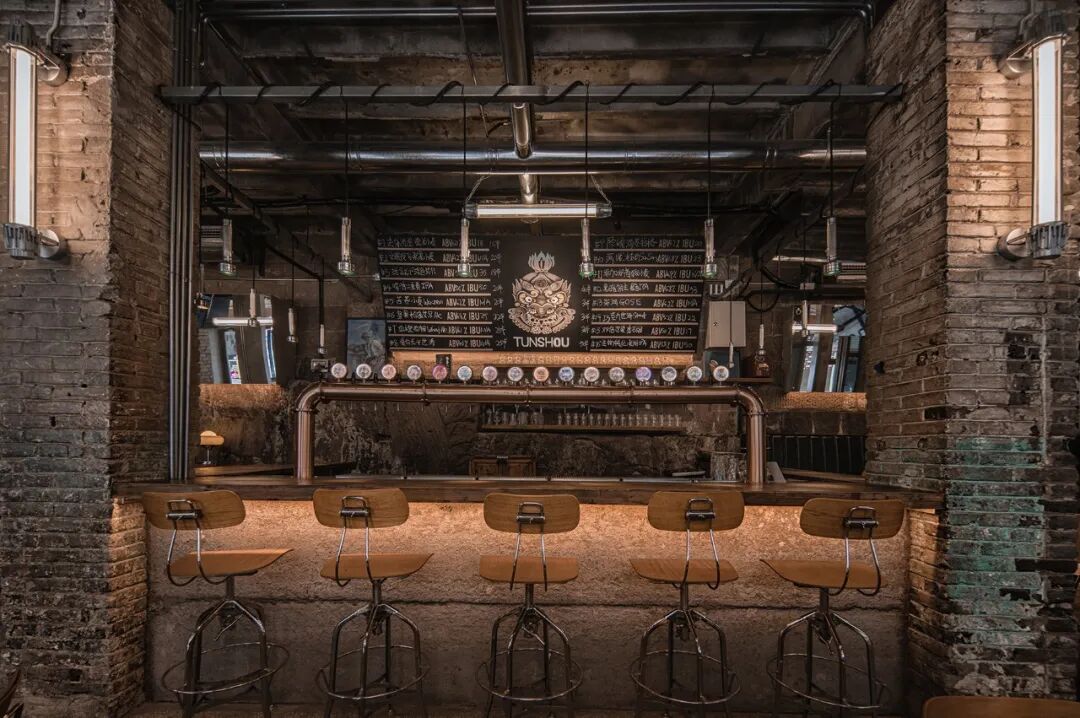 鉴于整个场地长条形。我们设定了以吧台为中心的结构,所有的活动及座位围绕着吧台进行,精酿啤酒的发酵机正好符合设计的工业设定,我们把其设置在比较显眼的位置,用玻璃分割,使其可视化,以彰显主题特点。