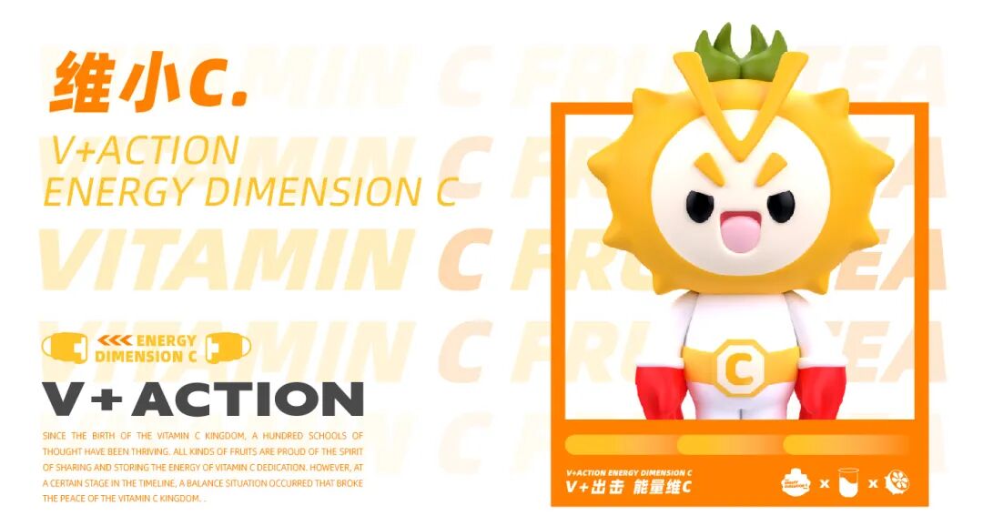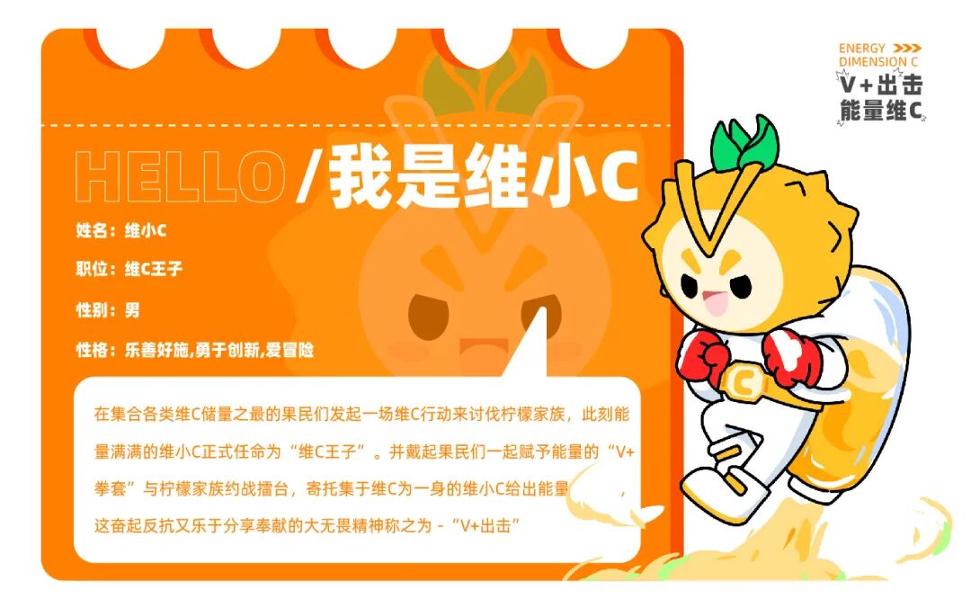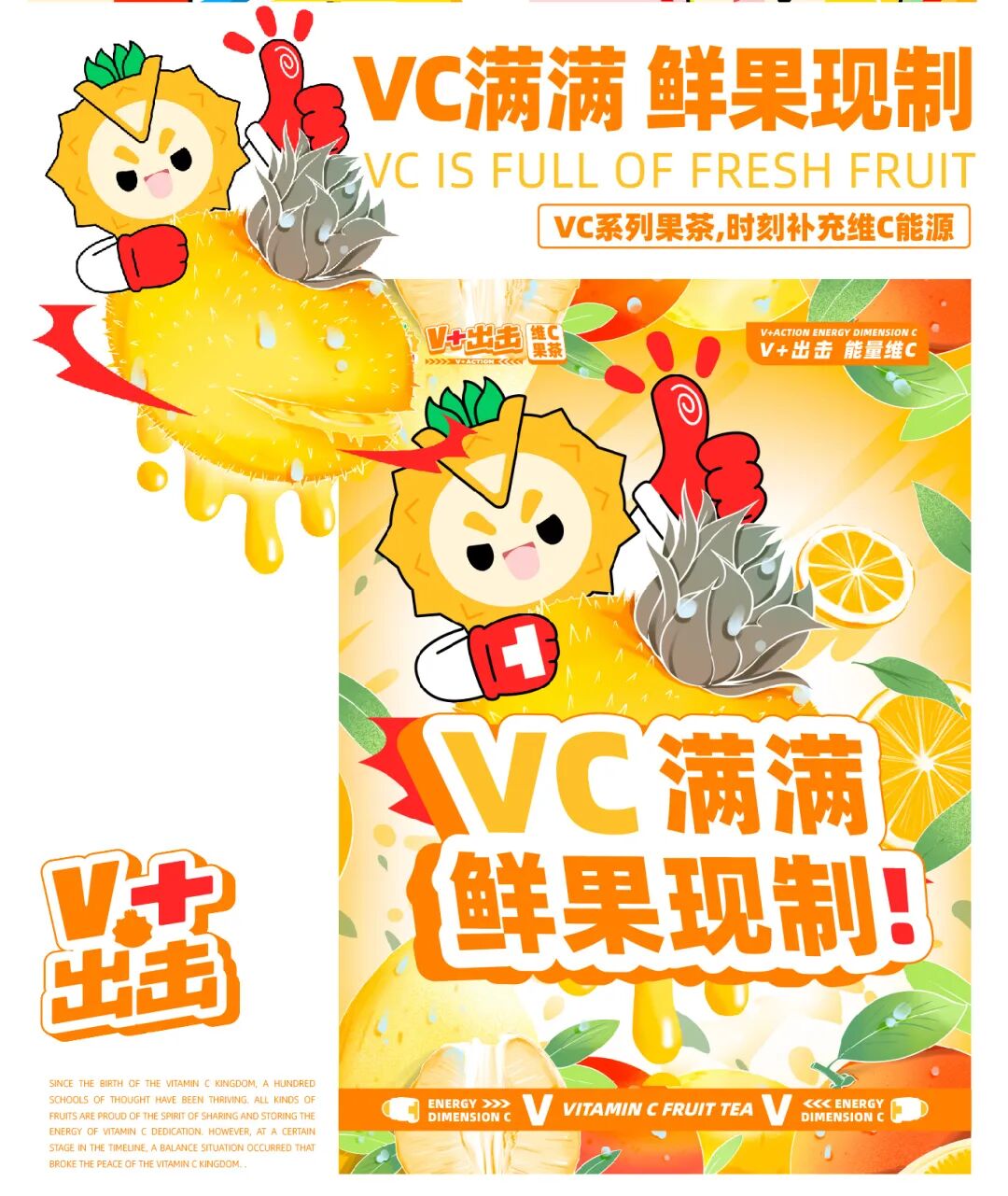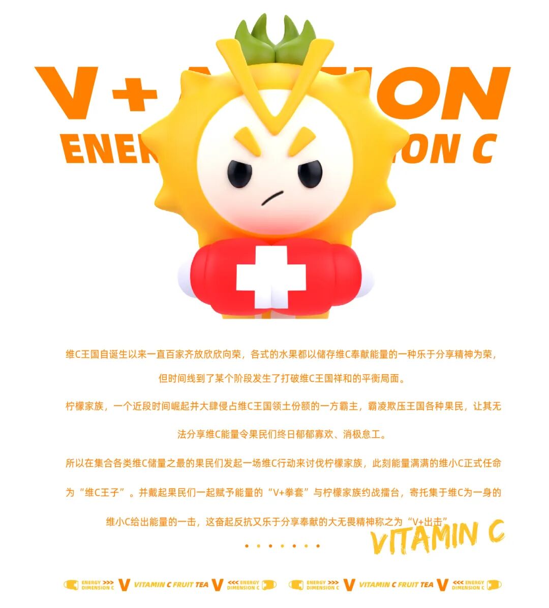 所以在集合各类维C储量之最的果民们发起一场维C行动来讨伐柠檬家族,此刻能量满满的维小C正式任命为"维C王子"。并戴起果民们一起赋予能量的"V+拳套"与柠檬家族约战擂台,寄托集于维C为一身的维小C给出能量的一击,这奋起反抗又乐于分享奉献的大无畏精神称之为"V+出击”