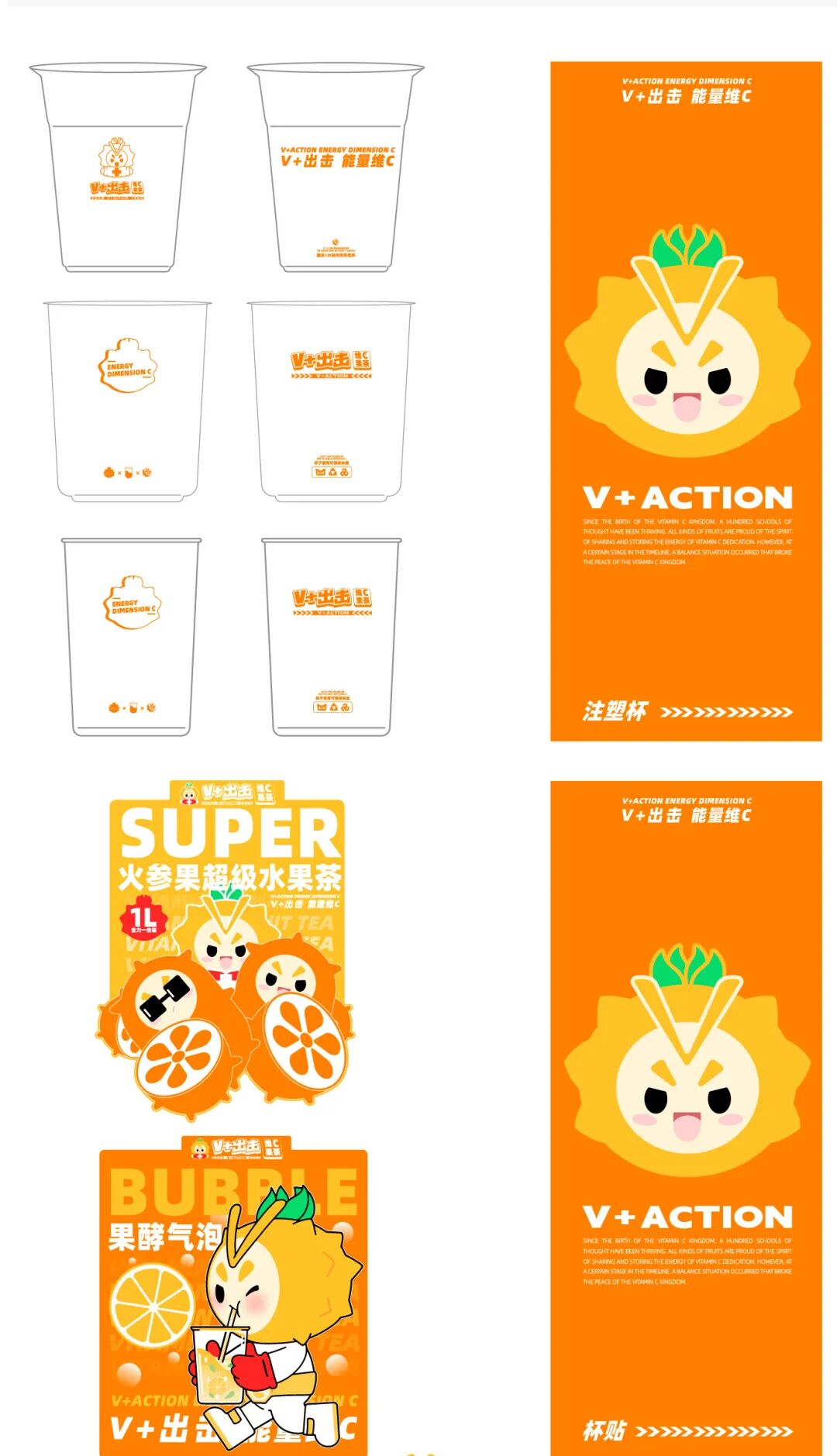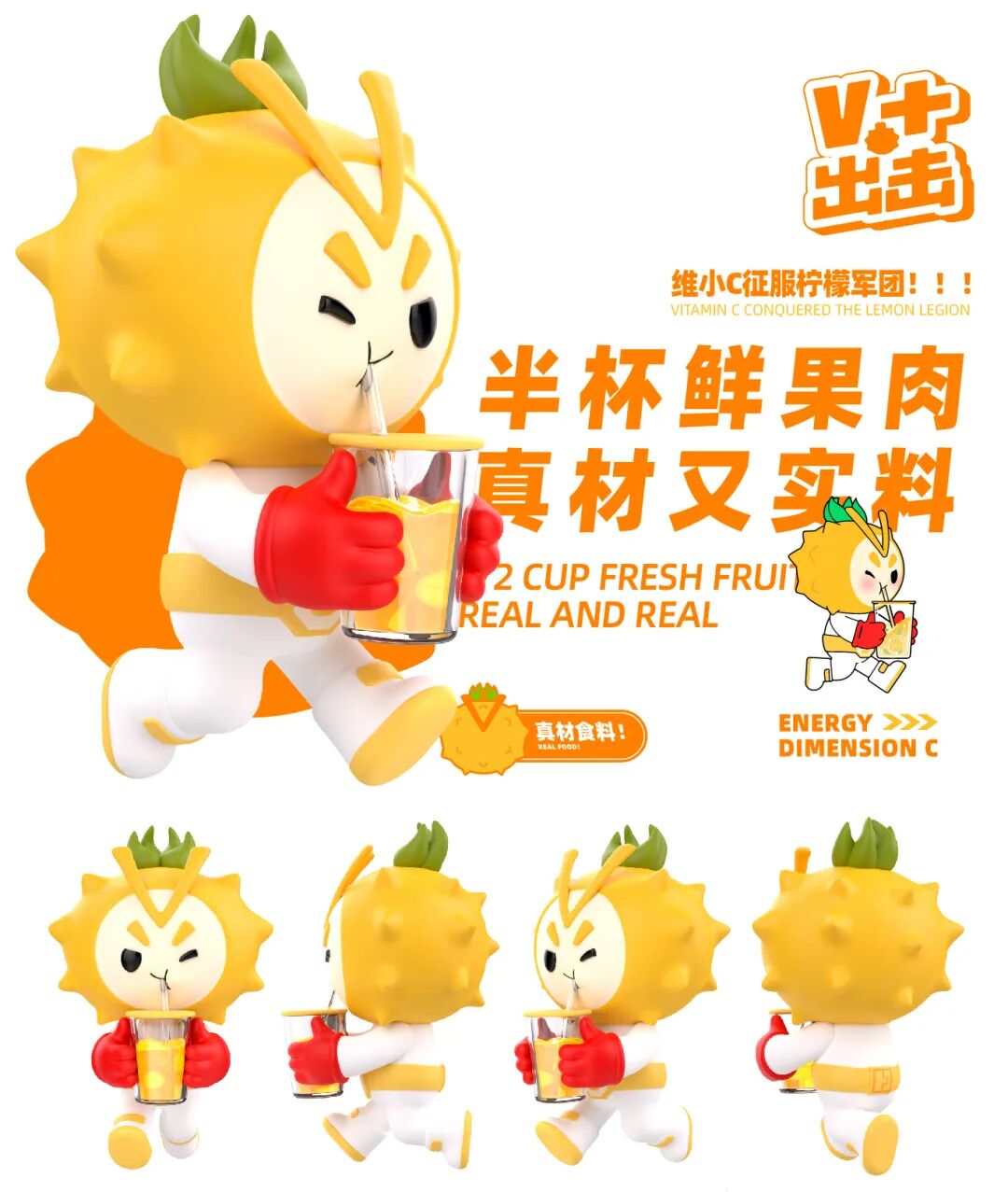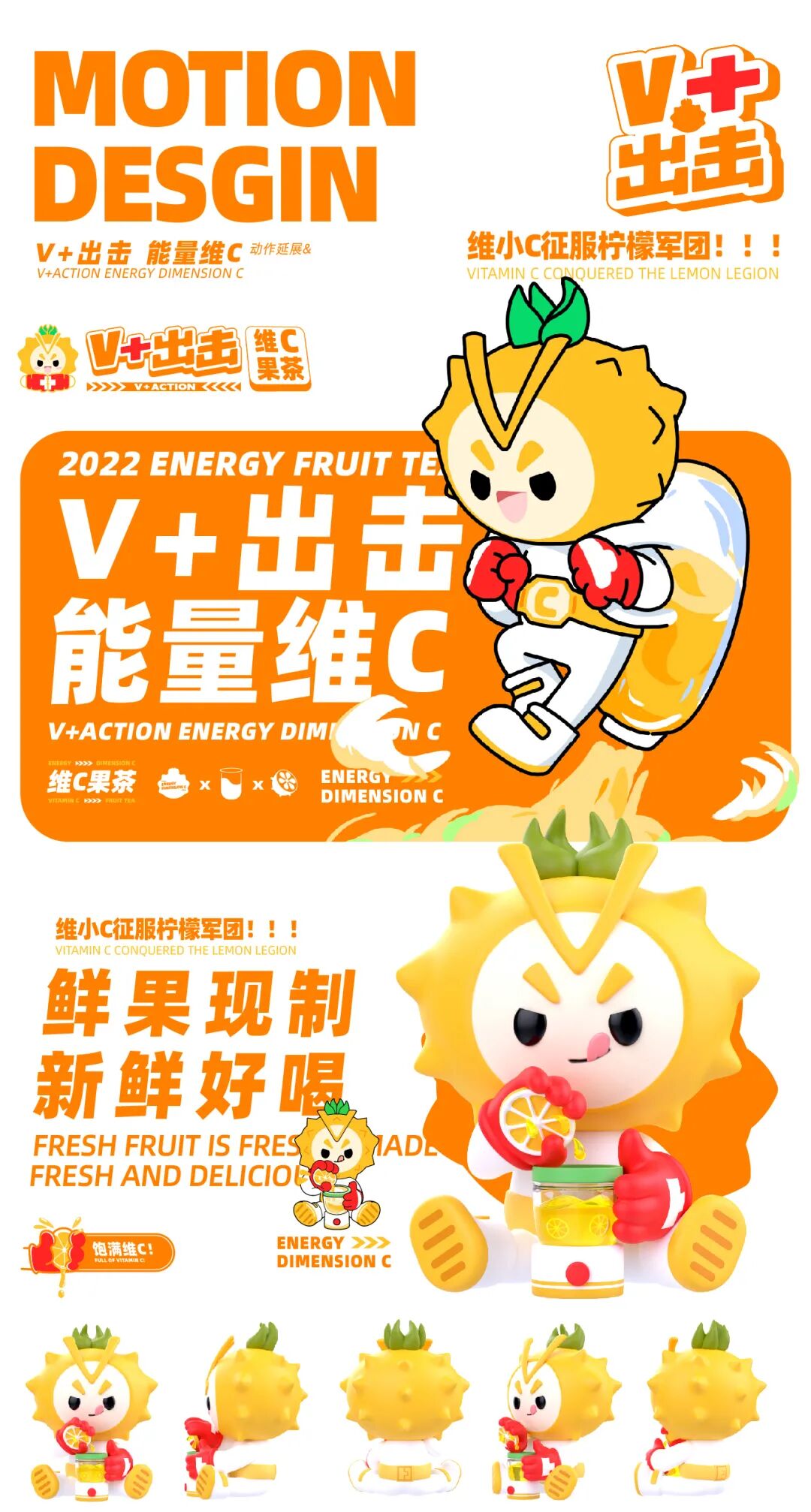 除了IP的设计,品牌形象也非常重要。在小维IP的展板、三视图、海报和其他延展中,我们可以感受到水果柠檬人IP形象的可爱以及满满的能量感,非常符合餐饮鲜果茶品类的特点和品牌理念。这样的品牌形象一定会吸引更多的顾客关注和支持,从而取得更好的营销效果。