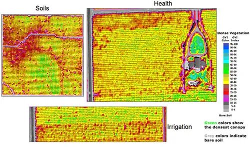 但许多数值实际上是变量,需要通过长时间的测绘和检测以观察和记录作物的变化,从而判断影响植物健康、产量的因子,从而及时地投入优化产物。
