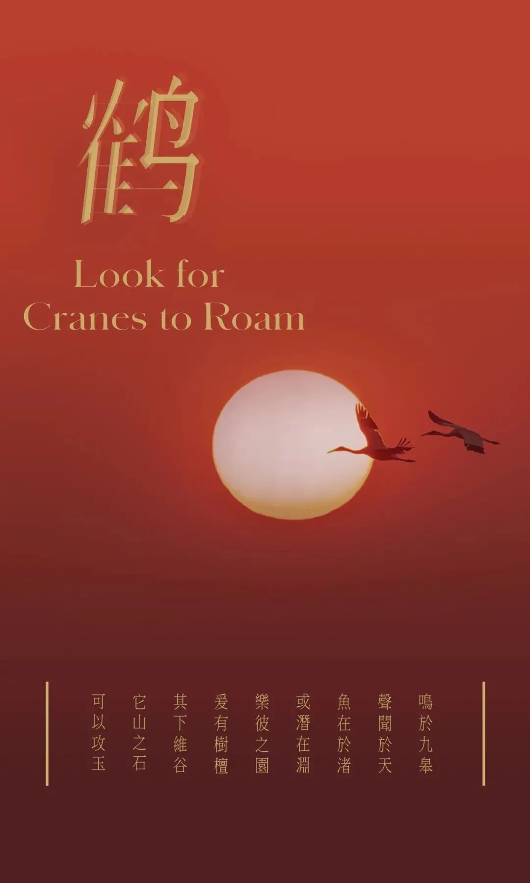 由华丽的抽象装饰画与灵动的金色仙鹤引入,
