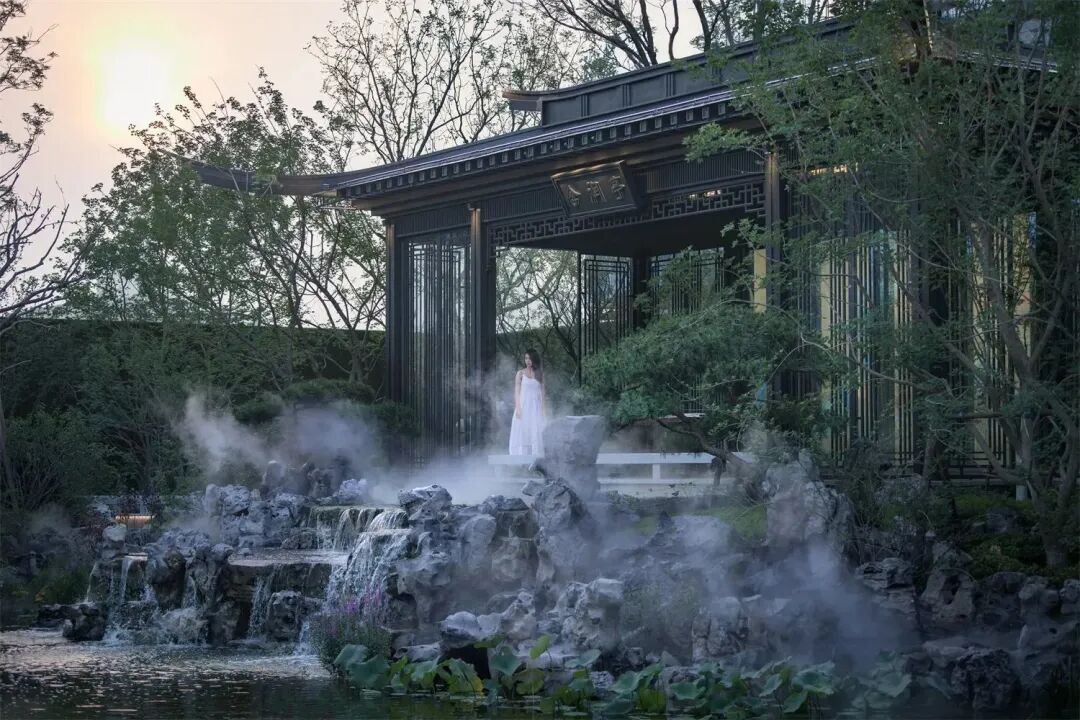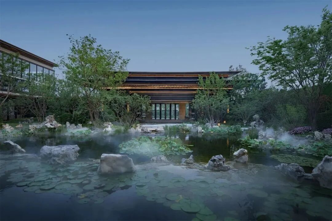 于方寸之间寻览自然雅境,隐现代闹市传承古都记忆,借千里画卷营造山水之势。项目以承德避暑山庄为原型,为到访者描绘了一幅烟波浩渺、层恋起伏的山水画卷,归家寻雅趣,自是画中人。