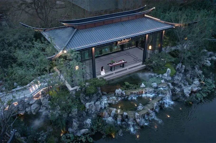 林深时见鹿,溪午长滩鸣。在渭泾之滨复刻自然惬意的森系场景,于繁华都市营造一处森居隐逸之地。