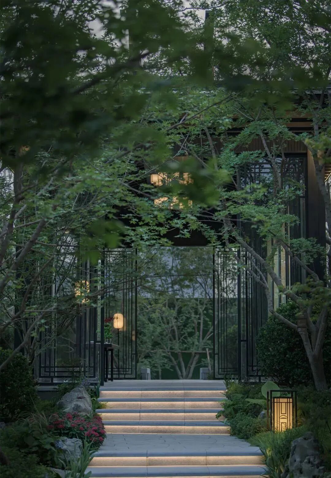 草阶、亭廊、树林、汀步、星球、灯光......营造了一处耐人寻味、温暖静谧的东方花园,让疲惫的身躯在寂静之园中得以栖居。