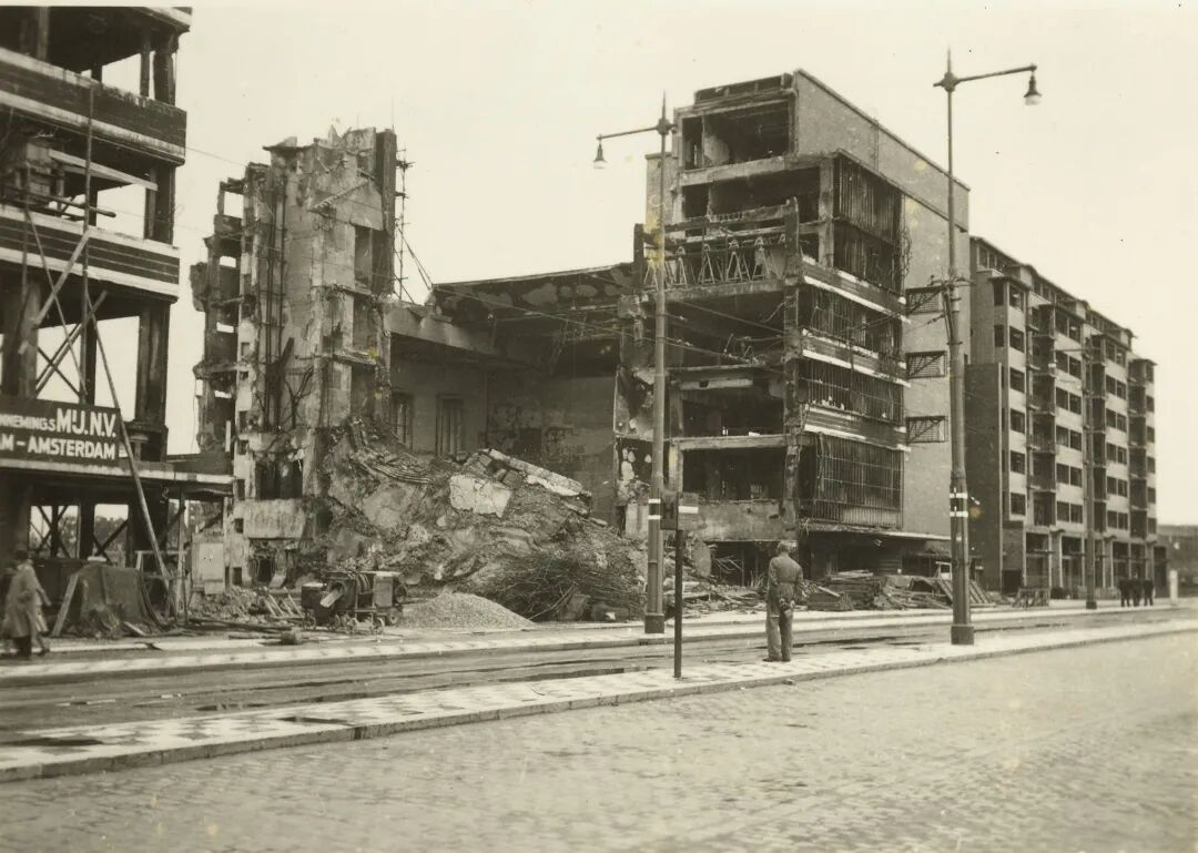 在承担第二次世界大战后果的建筑中,最为可惜的是威廉·杜多克 (Willem Dudok) 于1928年至1930年间在老范霍根多普斯广场 (Van Hogendorpsplein) 建造的De Bijenkorf百货公司,这栋建筑当时是欧洲最大的商店。