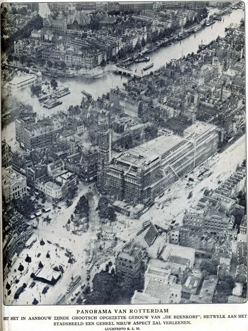 杜多克的De Bijenkorf以“欧洲最现代的百货公司”为口号,于1930年10月在鹿特丹市中心举行的一次聚集了70,000多人的开业活动。