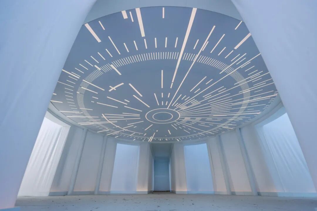 Es Devlin 在接受 Dezeen 采访时表示:“该装置的名称 Five Echoes,在某种层面上是对其形式的一种总结:迷宫的五个同心环路径围绕着中央平台‘回响’。而就另一种层面而言,这个名字也引用了古希腊的舞蹈,迷宫的形式正是来源于此——就仿佛那些古老的脚步声仍然在其走廊中回响。”