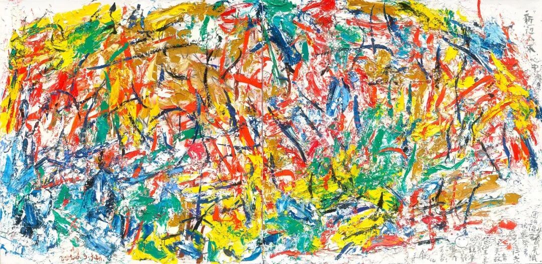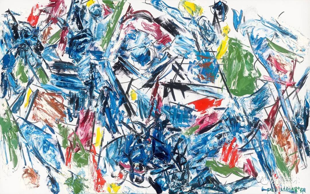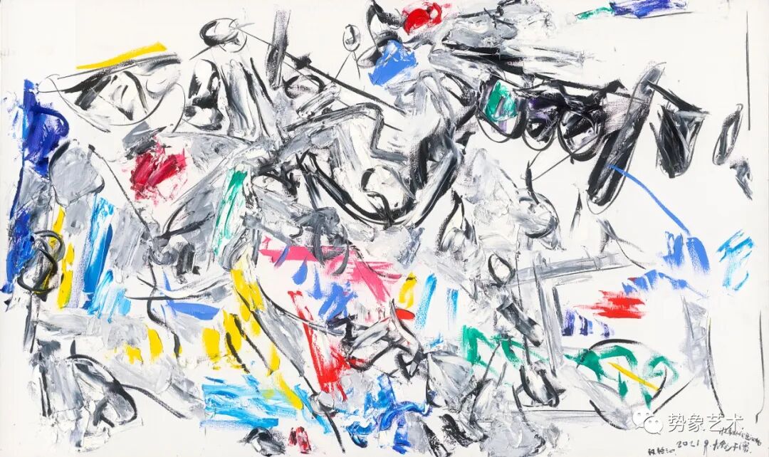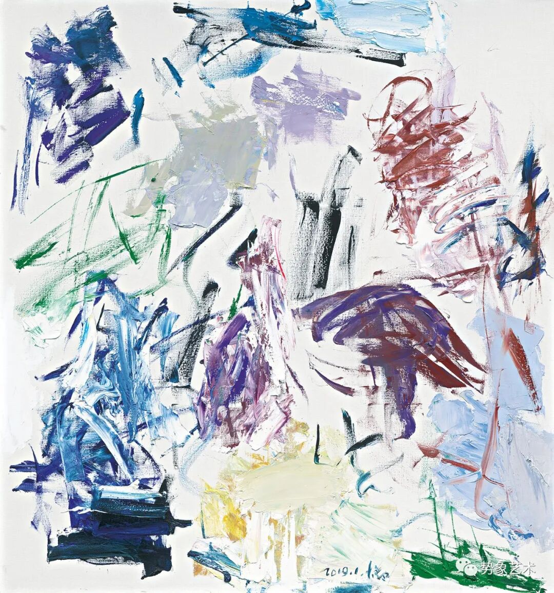 2016年以后,虽然已经是高龄,赵大钧老师的艺术创作进入高峰期,他的绘画更为注重表现性,越来越抽象,被艺术史家高名潞称为是“内游的理性绘画”,“内游”既不同于画家仅用眼睛去观察取物的“视游”,也不同于那种身临其境、触物生情的“身游”,而是一种“心游”。通过书写调动心智,从而把心、物、景整合为一。2019年后他进一步创作了大尺幅的“汉柏”系列、“欢乐颂”系列,绘画越来越自由,形成了自己鲜明的风格。