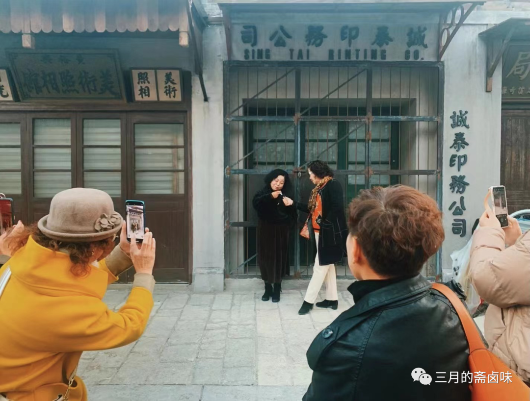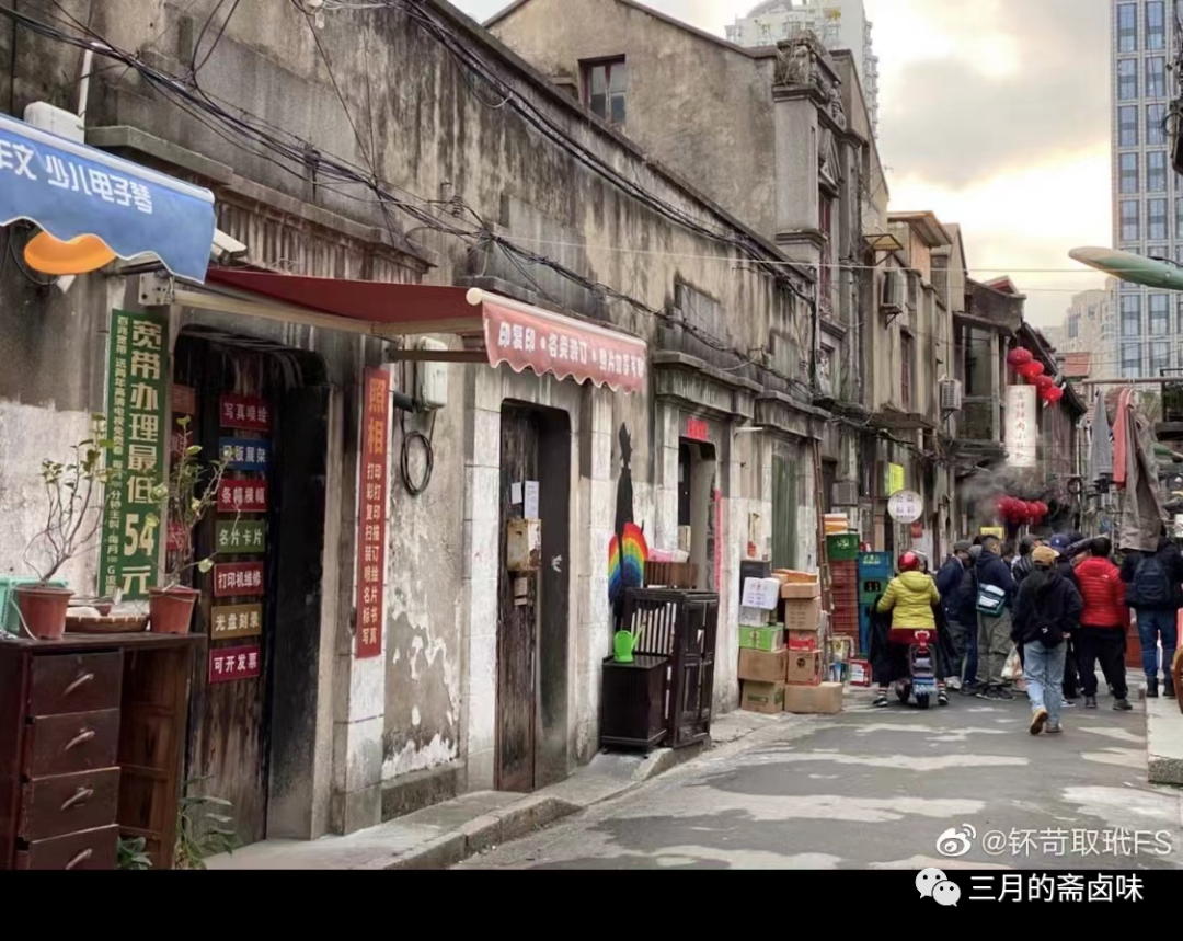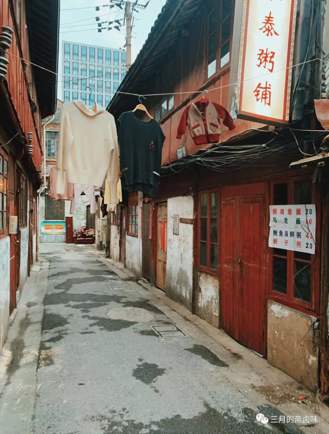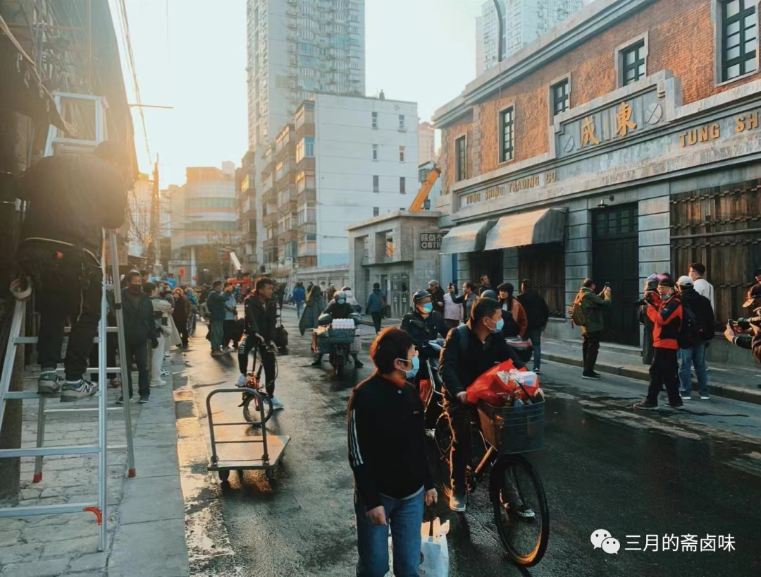 喧嚣过后,“群演们”辗转到新的影视基地——金家坊、西马街。印象中这两条路已经好久没有这么多人了。随着拆迁,那残破的老房子自然也成为了剧组们眼中的宝。我个人觉得这里的道具组做的比江阴街的要好,在和一位剧组人员的聊天中了解到一些货物都是通过某宝和某鱼淘来的,一些家具都是从搬迁走的居民家中搜集过来的。至于谁会来拍戏,他说暂且保密,因为江阴街被泄漏的太快了(我甚至在上礼拜六听路人甲阿姨和我说梁朝伟在周天凌晨1点会来,信息之详细精准!也只有强大的阿姨妈妈们了!