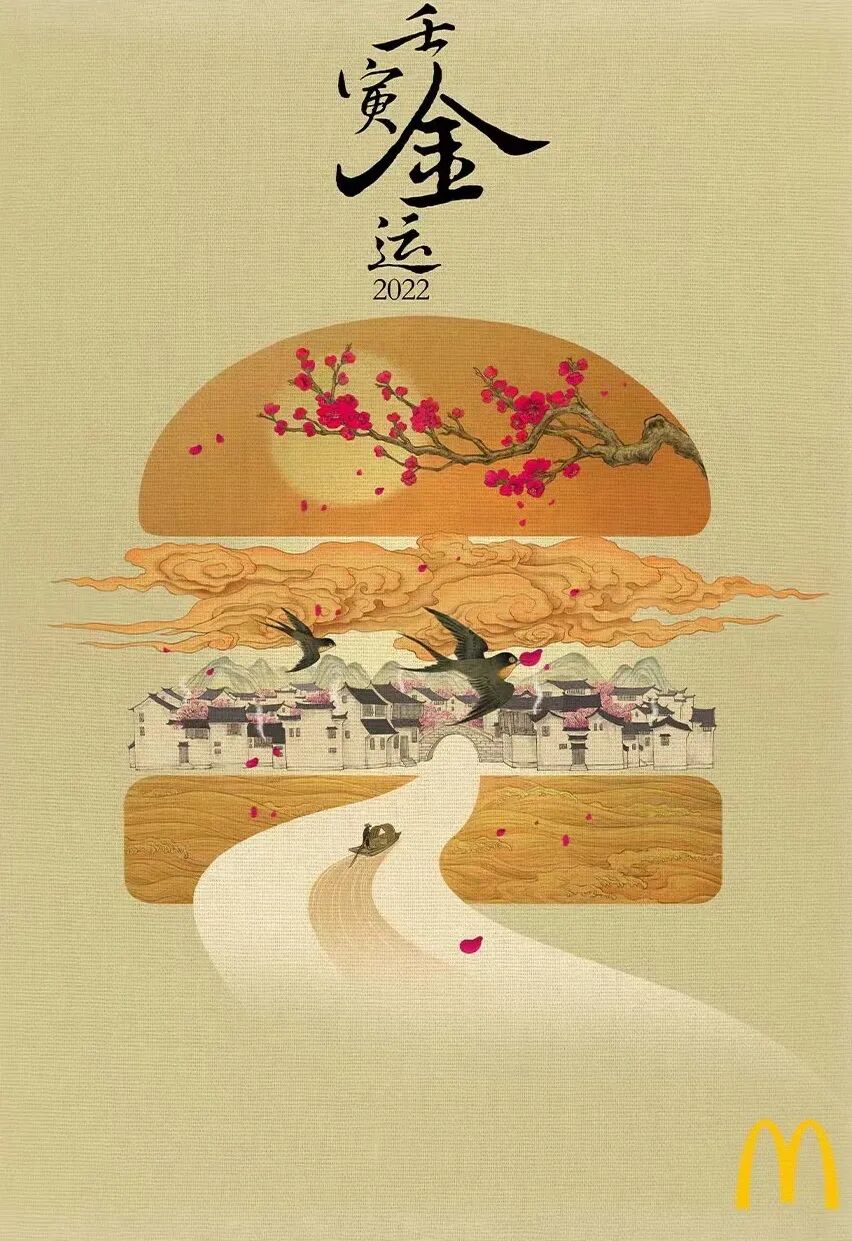 与此同时,麦当劳也在官方微信公众号,放出了由著名设计师黄海,以水墨笔触打造的一幅“壬寅金运”主题海报。