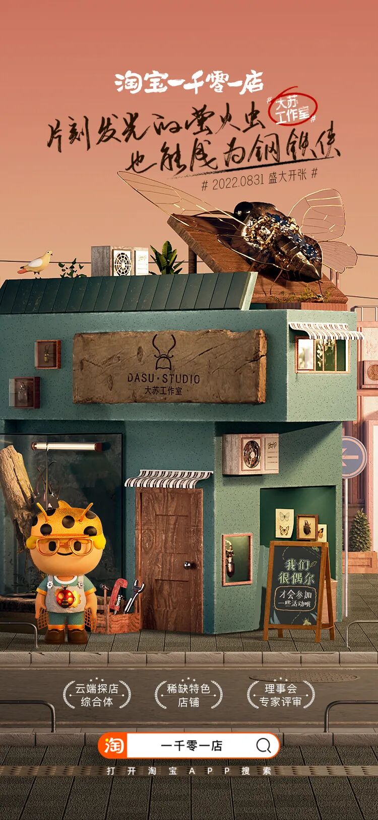淘宝一千零一店,是由淘宝出品的“大型云端探店综合体”,首批入驻精选了30家重点店铺,分山野间、喜欢窝、匠人谷、万花筒、软萌舍五大街区。