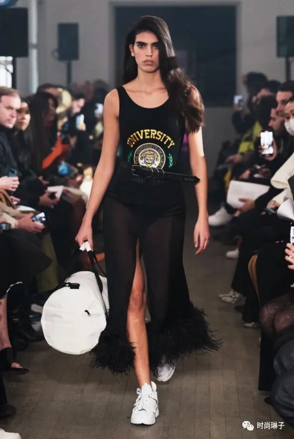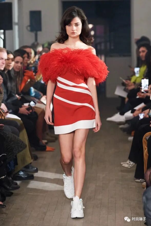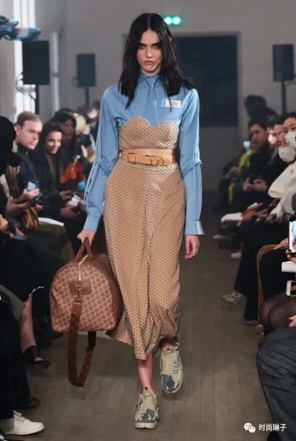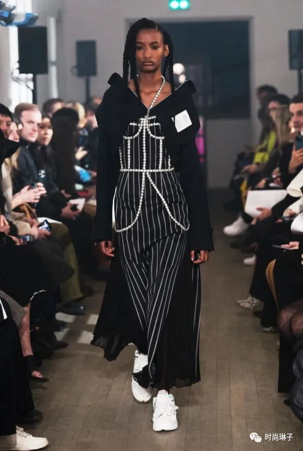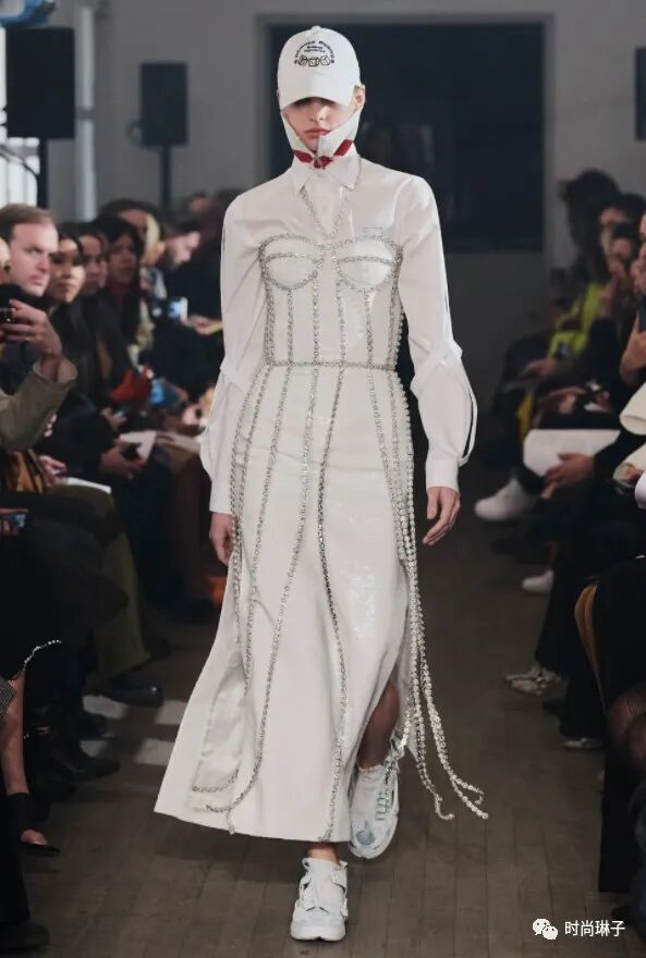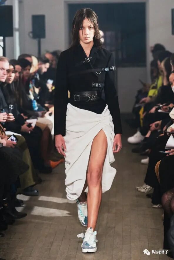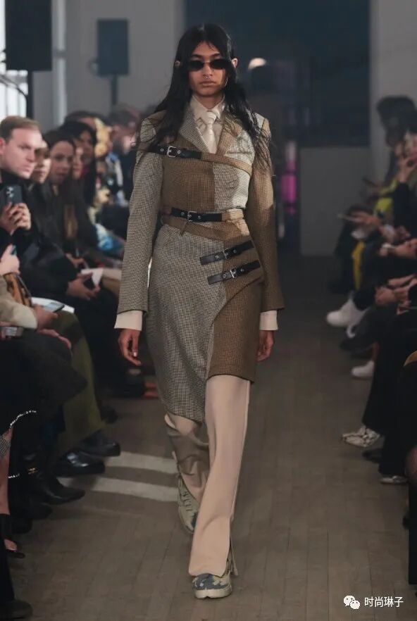 该系列无论是西装外套,运动风夹克,学院风格纹上衣,解构裙装,休闲裤,还是长款风衣,或是优雅俏皮的礼服裙,都搭配着别致的运动鞋,传达了对舒适时尚的追求。