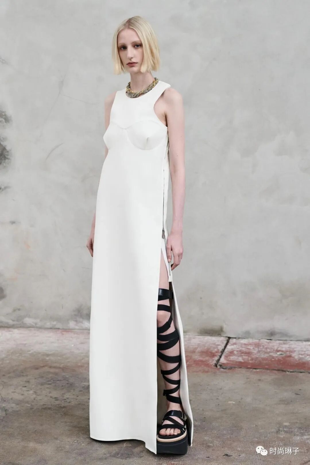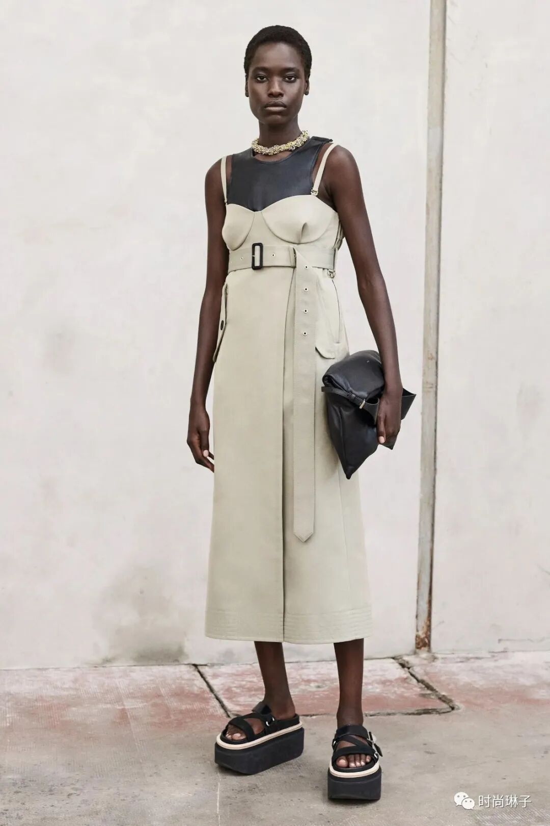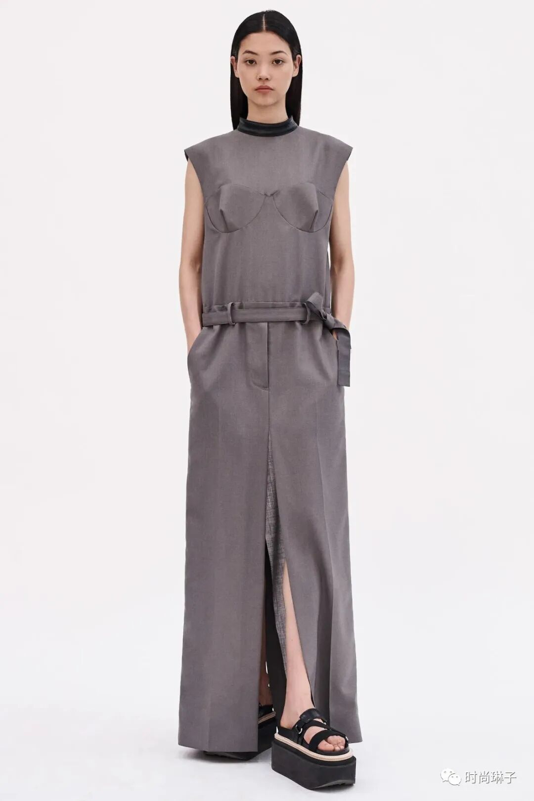 胸衣的细节造型与裙装完美融合,方形的短裙剪裁不拘一格。