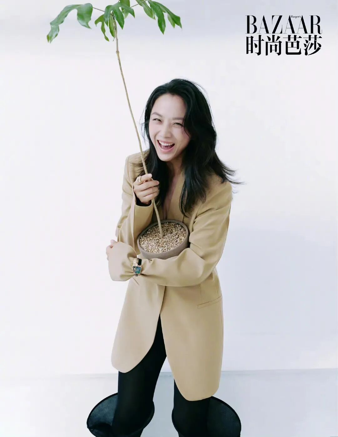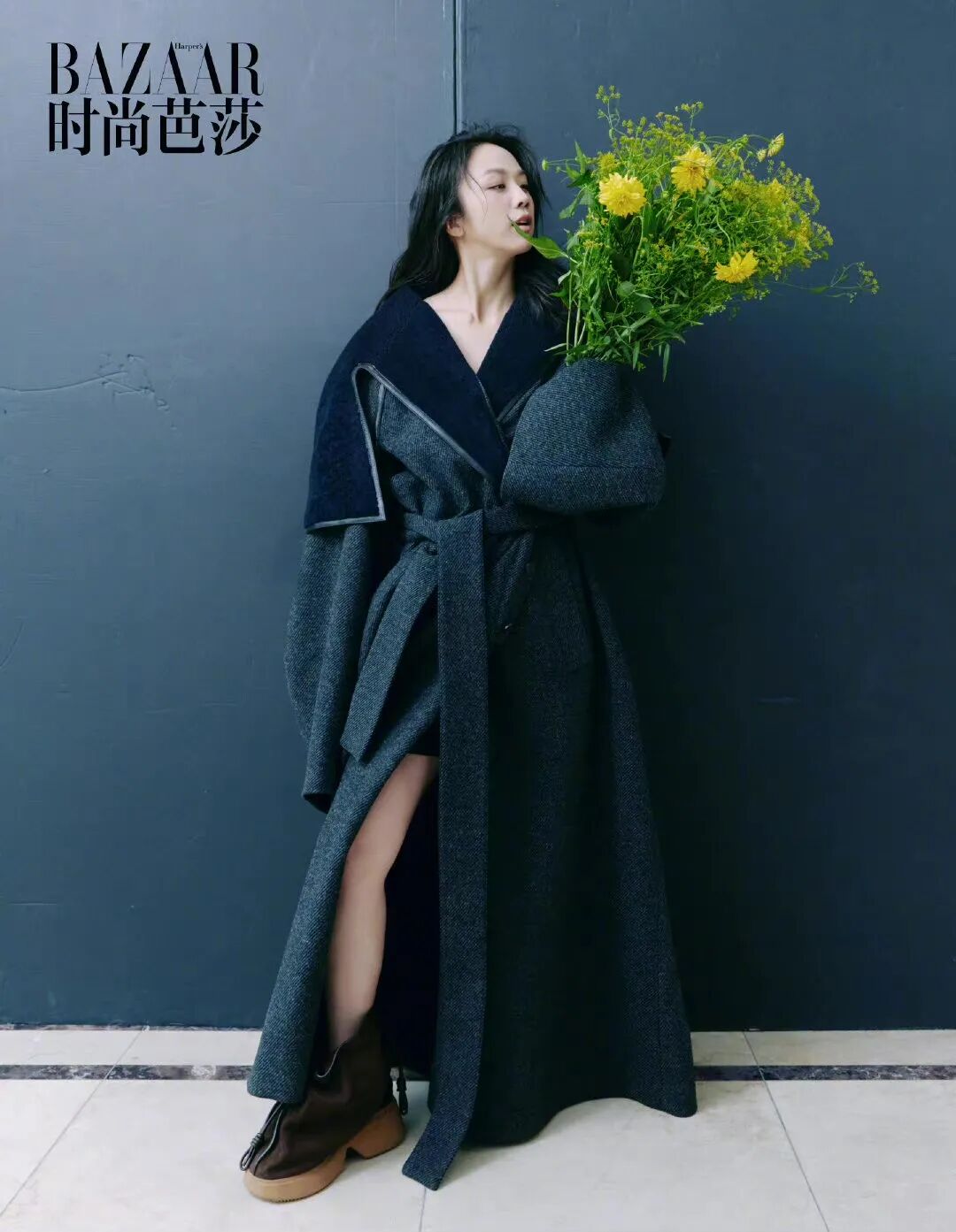 汤唯身着 LOEWE 登上《时尚芭莎》九月刊封面,时隔十一年迎来二登,运用鲜花道具,呈现轻松自在的一面,简单纯粹得不像金九刊。