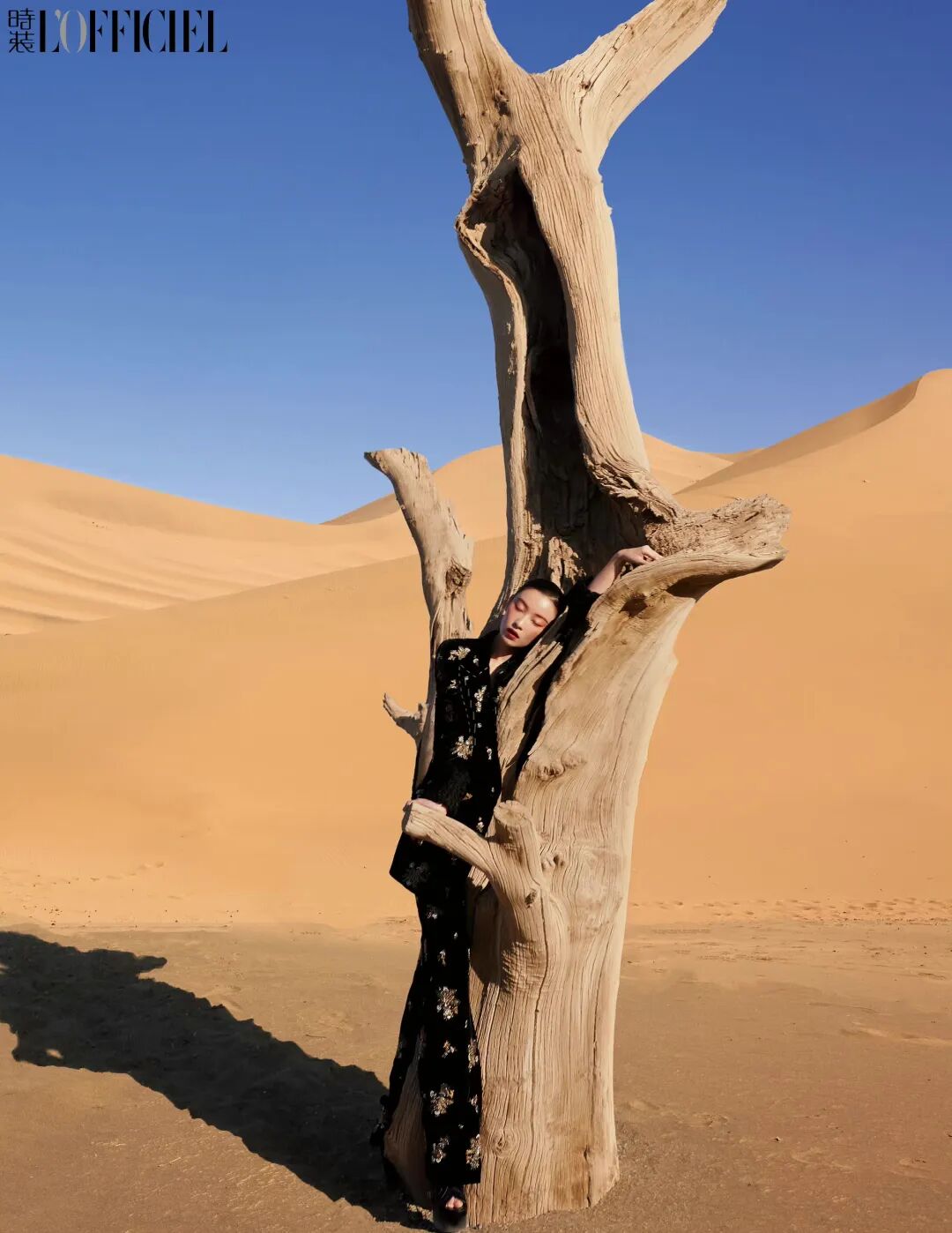 倪妮登上《时装L'OFFICIEL》九月刊三封面,前往敦煌的大漠戈壁拍摄,再度在炎热的外景下呈现一组令人觉得「值得」的美丽大片
