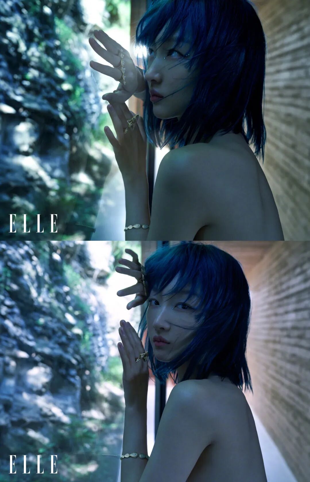 周冬雨登上《ELLE世界时装之苑》九月刊双封面,蓝色短发造型加上突破的半裸呈现,非常美的一次演绎,带着未来感的赛博朋克少女模样。