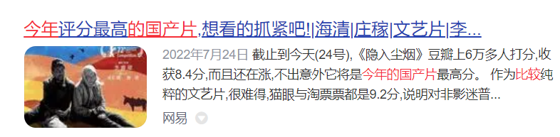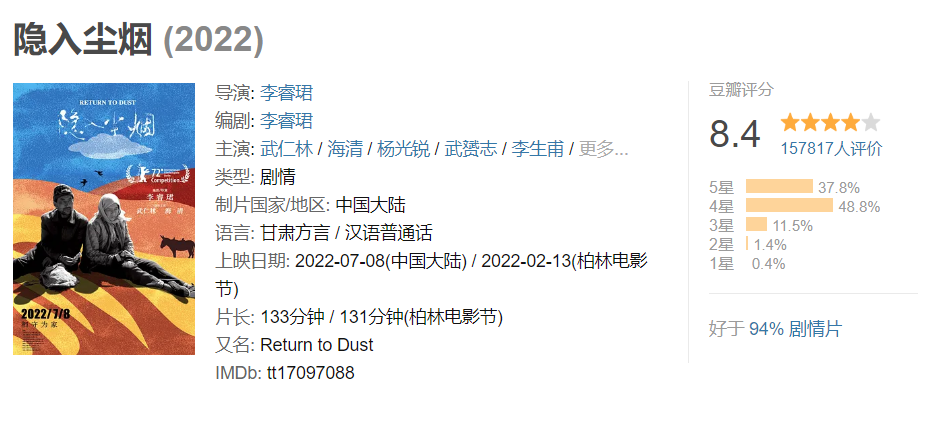 《隐入尘烟》那么土,却那么美,一部关于乡村的电影,一部关于爱情的电影,也是一部电影入围国际三大电影节主竞赛单元,甚至被媒体誉为"今年最好的国产电影"。