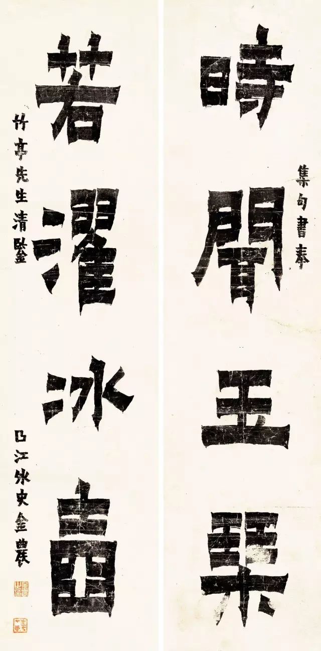 ▲ 金农 漆书四言联 镜片 水墨纸本