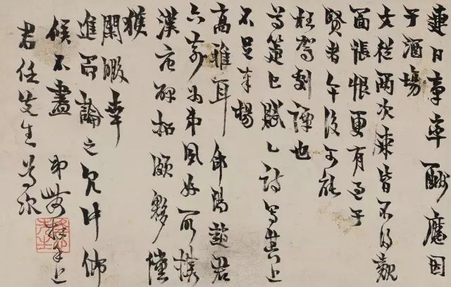 在富贾云集车水马龙的扬州,金农的冷逸,是激流跌宕后的冷静,浮躁中的平静,浊世中的一方幽静。冷却了心中一切躁动、欲望、挣扎等冲突,从现实的苦困中超越开来,与天地精神独往来。