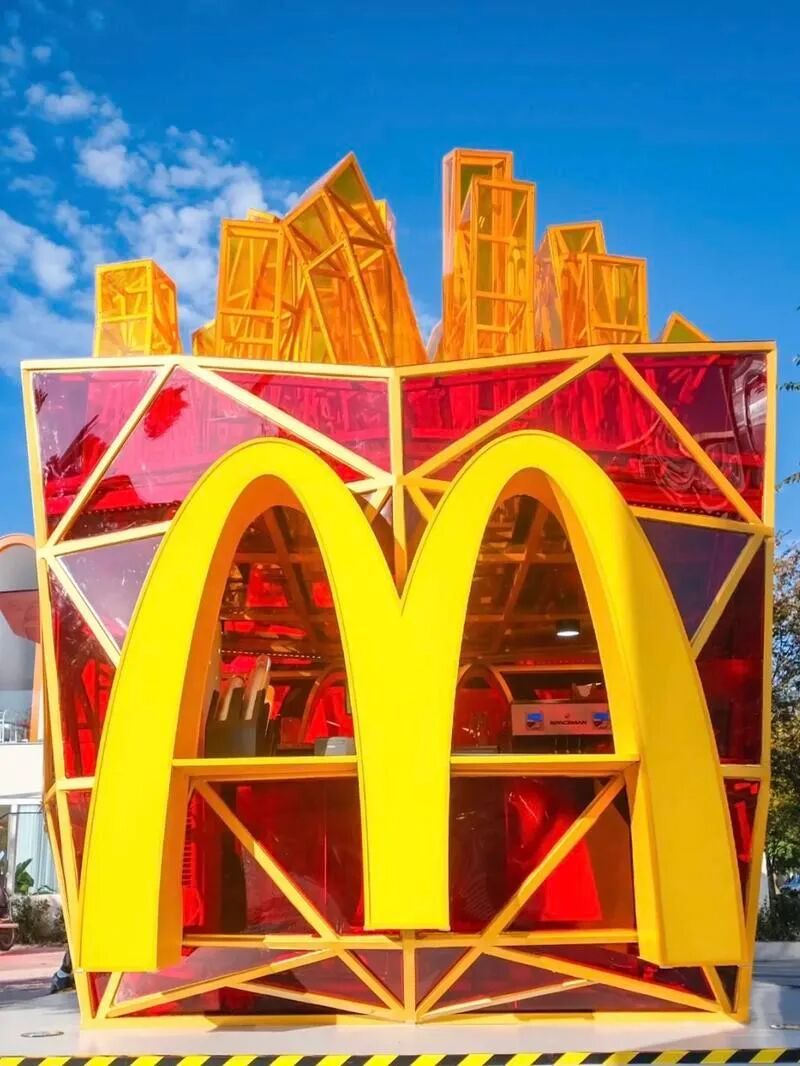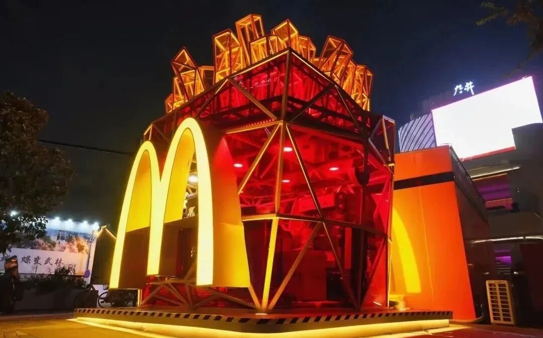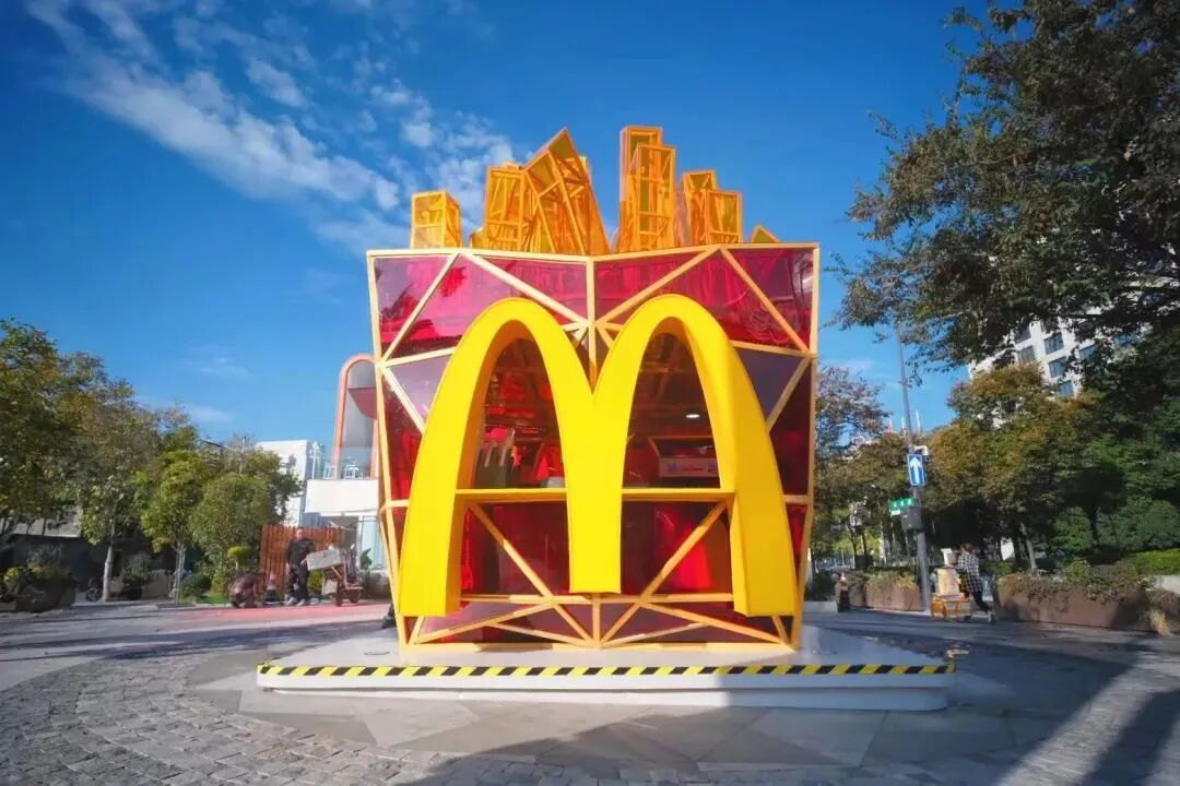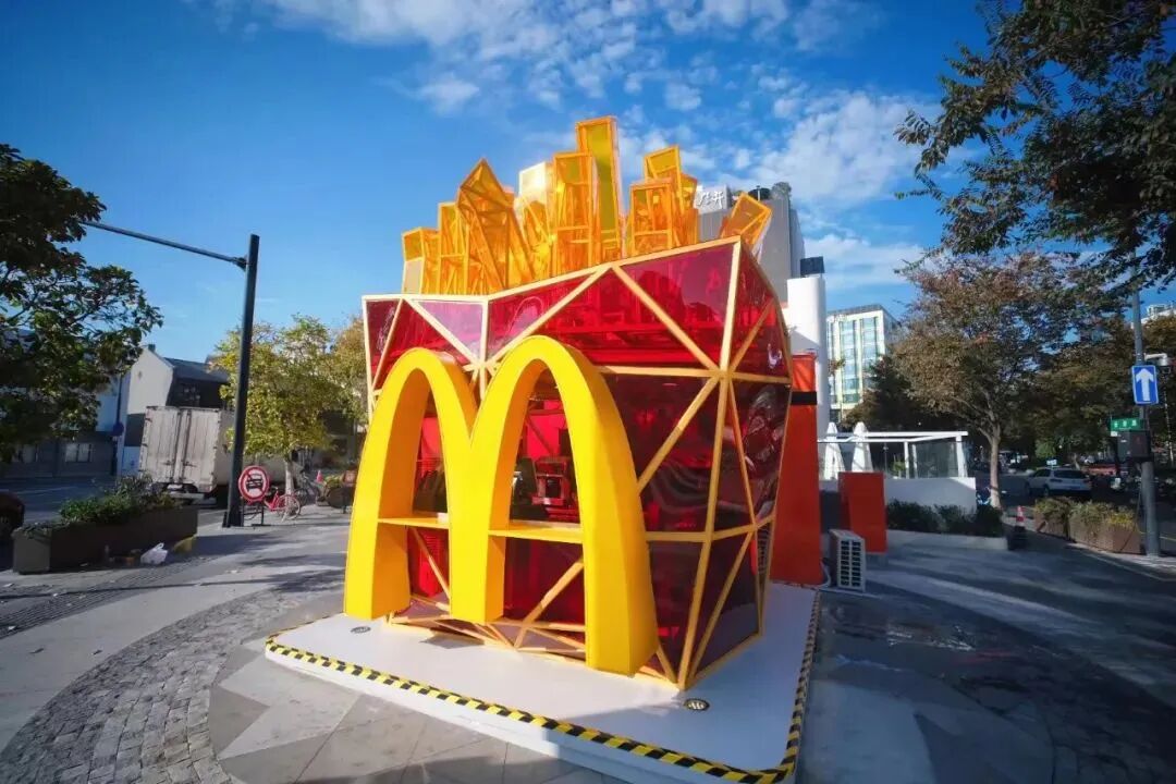 近日,麦当劳华东首家薯条快闪店亮相拱墅区武林路南广场。快闪店的设计采用经典红黄双色,融合薯条产品造型外观和标识性的巨大字母「M」,夺人眼球。此外,工业风钢架结构的几何造型与透明墙面更是营造出「赛博朋克」的电子科技未来感。