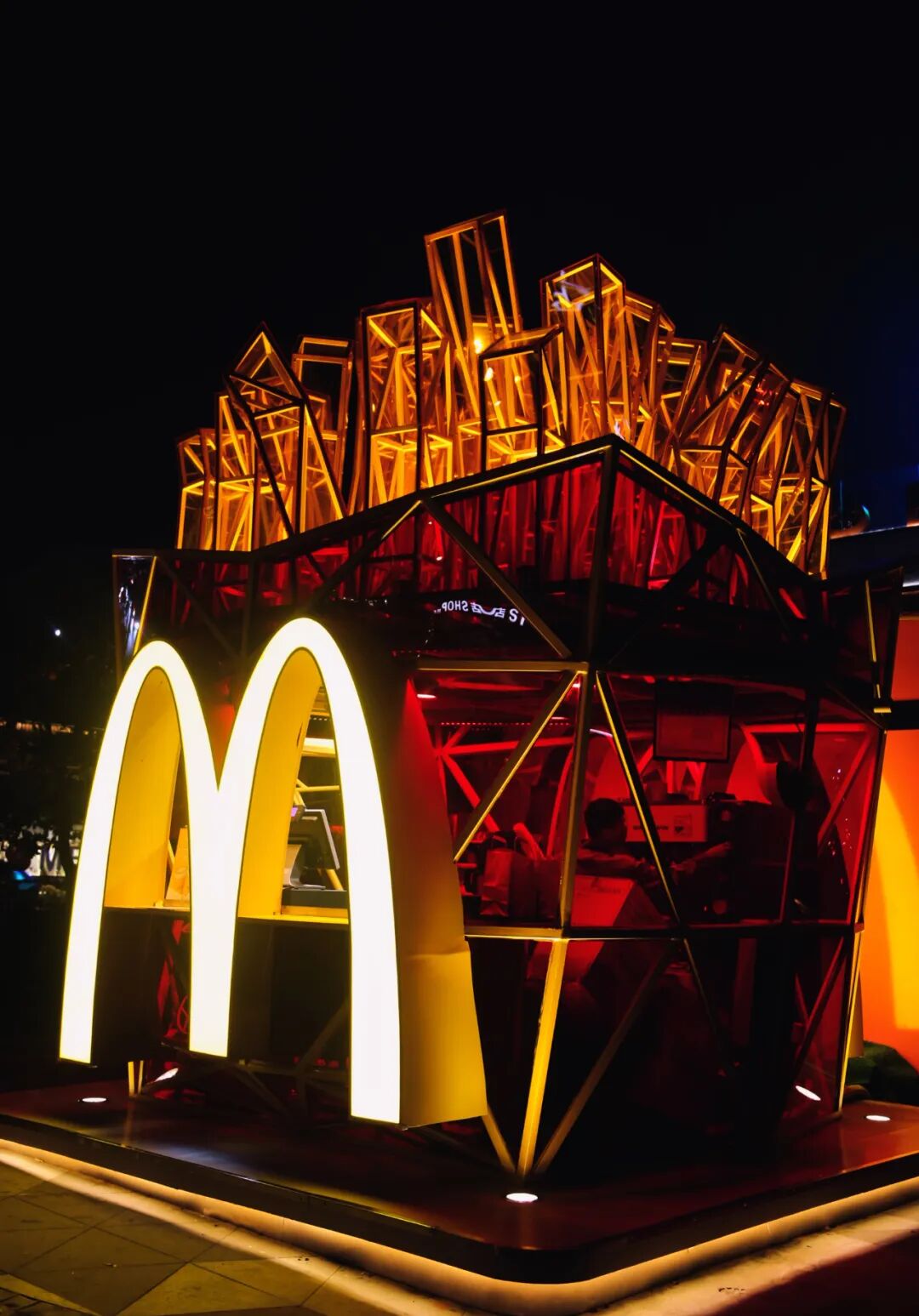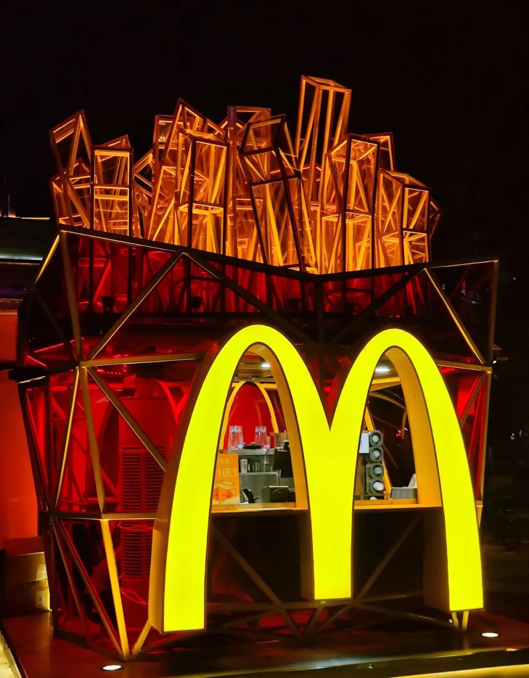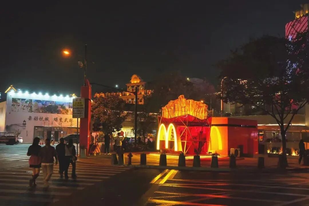近日,麦当劳华东首家薯条快闪店亮相拱墅区武林路南广场。快闪店的设计采用经典红黄双色,融合薯条产品造型外观和标识性的巨大字母「M」,夺人眼球。此外,工业风钢架结构的几何造型与透明墙面更是营造出「赛博朋克」的电子科技未来感。