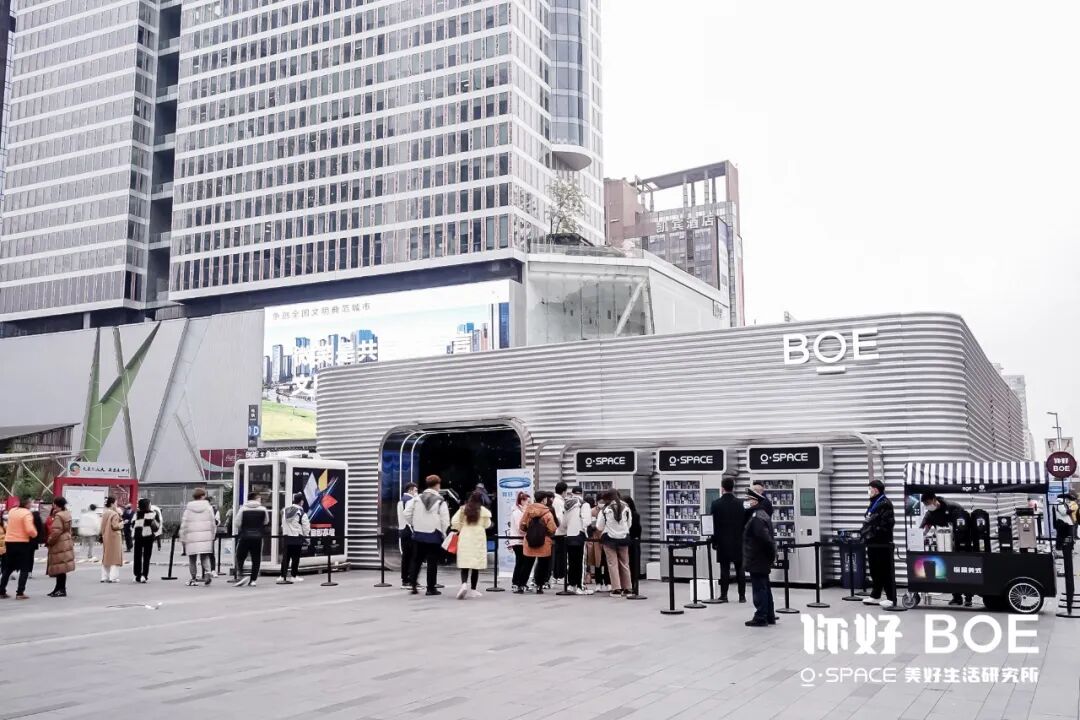 12月8日,在成都的网红打卡地春熙路步行街,一场别开生面的品牌快闪活动开始了。在极具未来感和科技感的赛博朋克场馆中,京东方通过实物与屏幕的融合互动展示,展现了包括家电、移动终端、生活场景的逐步智能数字化的变迁史;为了更好地向大众揭秘“一块显示屏的前世今生”,京东方还将液晶屏幕生产的四大核心工艺——阵列、彩膜、成盒、模组“搬”到了现场。