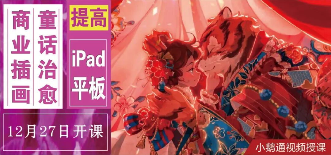 ❤(12月27日周二开课)「小鹅通app」视频授课!KUNATATA老师8节提高课!iPad「童话治愈系」商业插画+8节提高课!一部iPad,画出绝美童话!