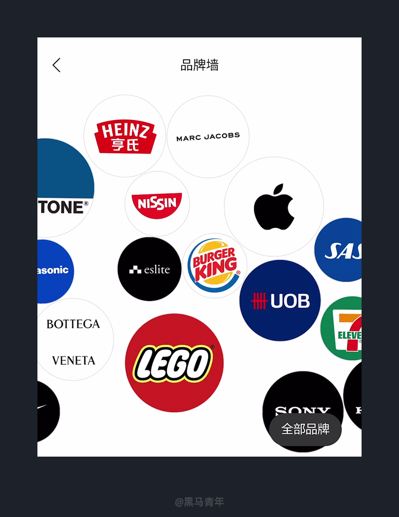 品牌 LOGO 展示常见的形式都比较中规中矩,横向或者纵向均以排版整齐为主。最近发现一个比较新颖好玩的品牌墙展示,结合互动性营造趣味感的体验。