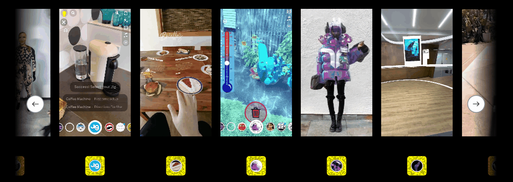 而 Snapchat 则将 AR 体验作为核心。其母公司 Snap 表示,平均每天有超过 2.5 亿用户在应用中使用 AR 技术进行创作, AR 滤镜被使用次数超过 60 亿次。