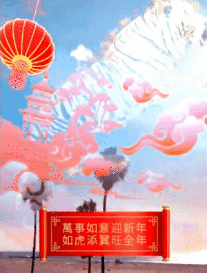 Snap 还添加了虎年滤镜,它使用天空分割技术添加了一只跳跃在云层中的动画水彩老虎,年味十足~