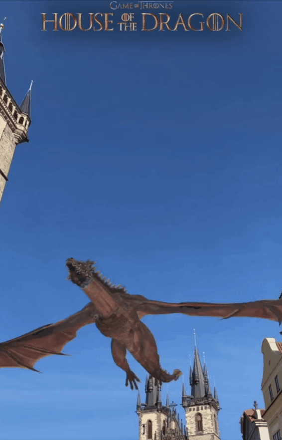 至于 Landmarker 滤镜,Snap 和 HBO 已经与世界各地的滤镜创作者协调,在当地市场打造定制的 AR 体验,为用户提供了另一种参与该剧的方式,用户只需在全球各地当地的地标上进行扫描就会显示该剧集中龙的 AR 渲染图。