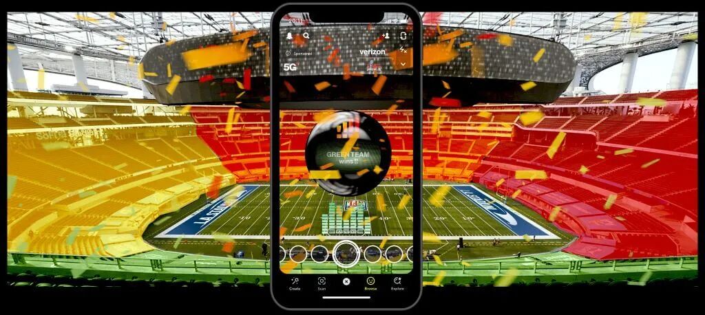 在 2022 年的超级碗,观看超级碗现场直播的观众和现场观众能够使用手机感受 AR 体验,大家可以去争夺在场地上空盘旋的虚拟飞艇的控制权。