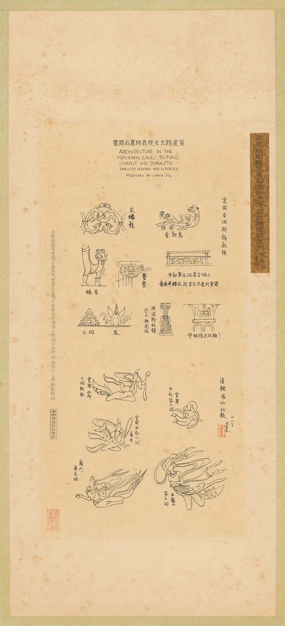 林徽因题签——梁思成勘绘云冈石窟所表现之北魏建筑图例 林徽因署耑