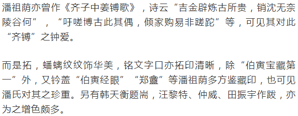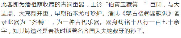 潘祖荫齐镈全形拓(自留本)——韩天衡题耑,汪黎特、仲威、田振宇跋