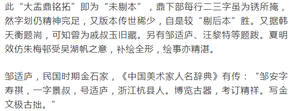大盂鼎铭拓——邹适庐、韩天衡、汪黎特跋